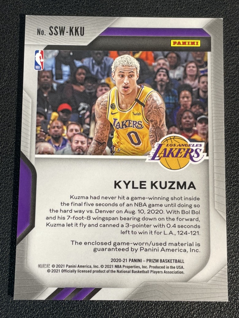 2020-21 Panini Prizm Kyle Kuzma 293 凯尔 库兹马 湖人 球衣 物料 微瑕如图 卡品如图 朕