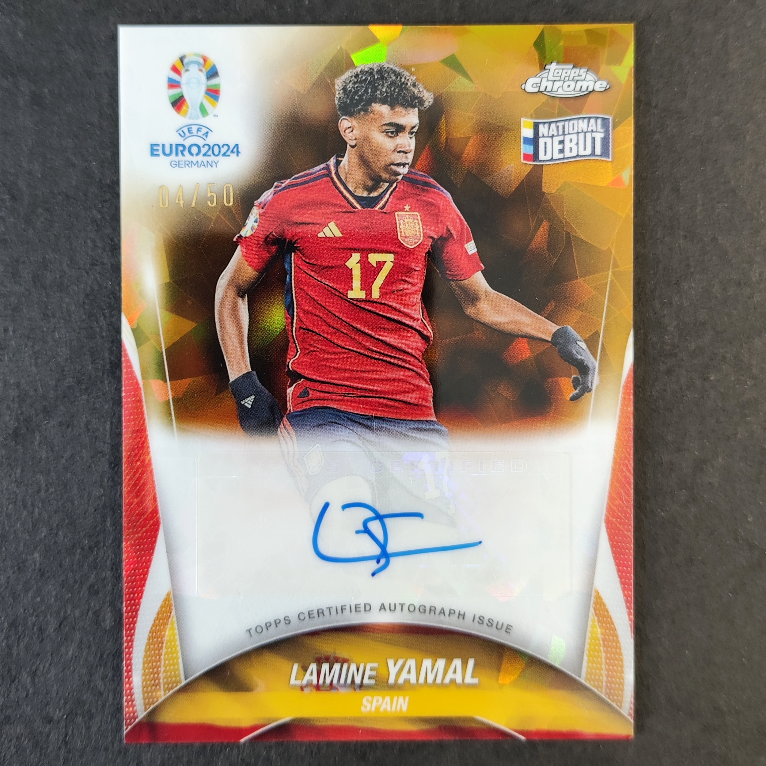 2023-24 Topps Chrome Lamine Yamal RC 亚马尔/50编金折金碎冰折签字 Sapphire折射天花板蓝宝石 右下角印如图 2024德国欧洲杯 西班牙巴萨巴塞罗那费尔明
