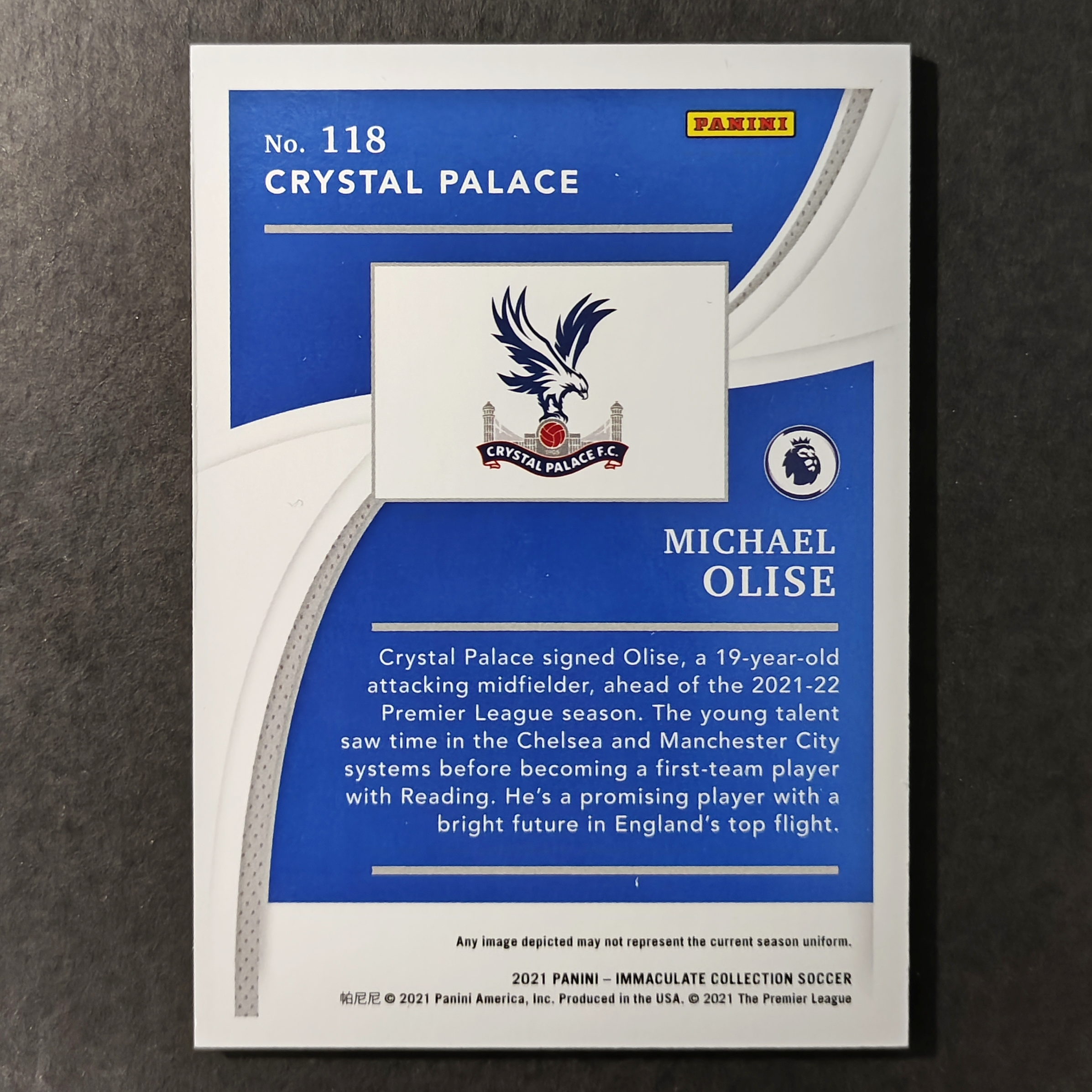 2021-22 Panini Immaculate Michael Olise RC 奥利塞 奥利赛/80编无签字 英超prizm水晶宫德甲德国拜仁法国核心穆夏拉卡尔比朔夫杜埃基蒂克姆巴佩chrome