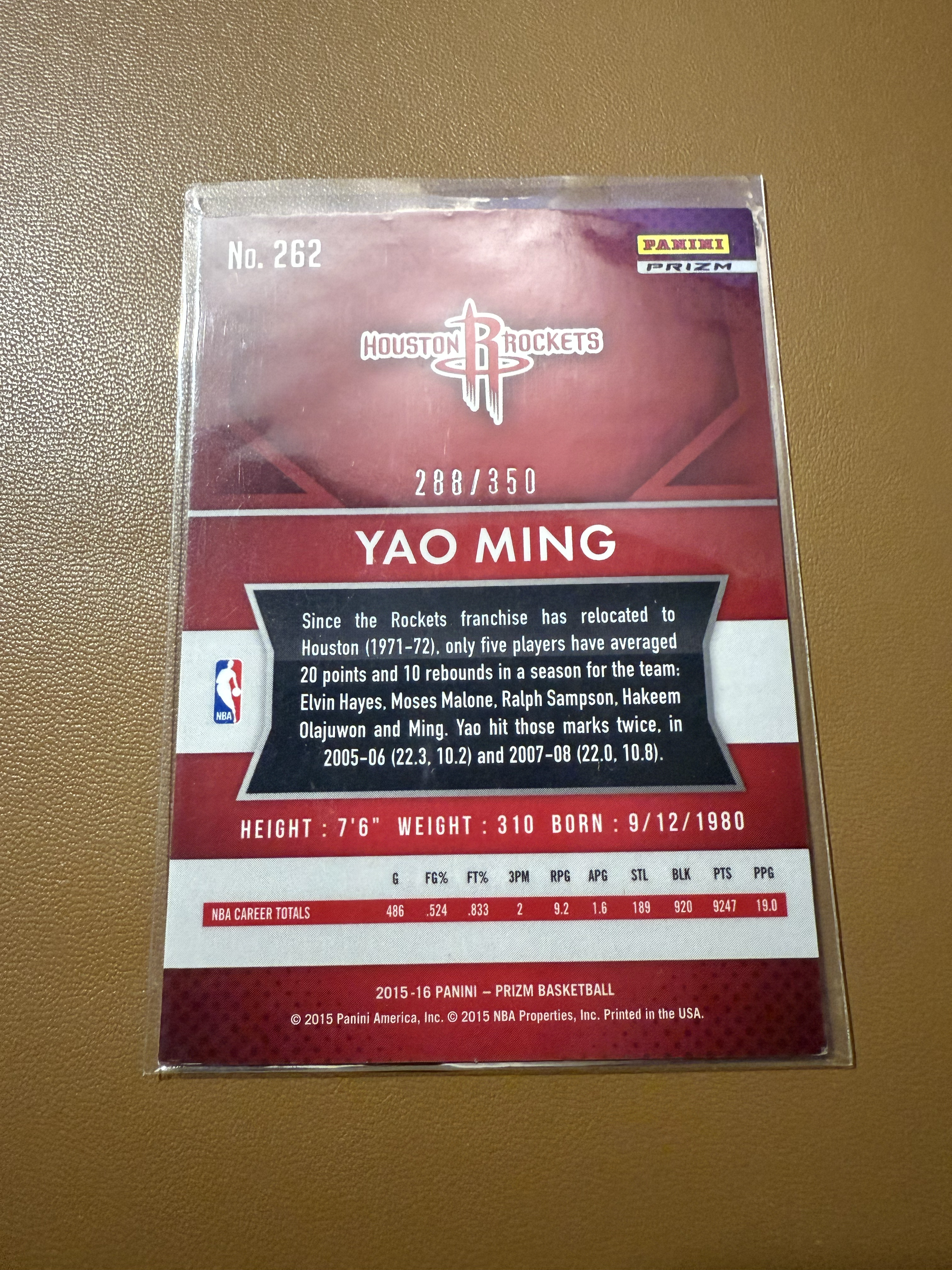 2015-16 Panini Prizm Yao Ming /350,姚明,姚主席,帕尼尼Prizm绝版年份,超稀有红色波纹折,限量350编,eBay超有价!当红大热系列,折射效果超炫!