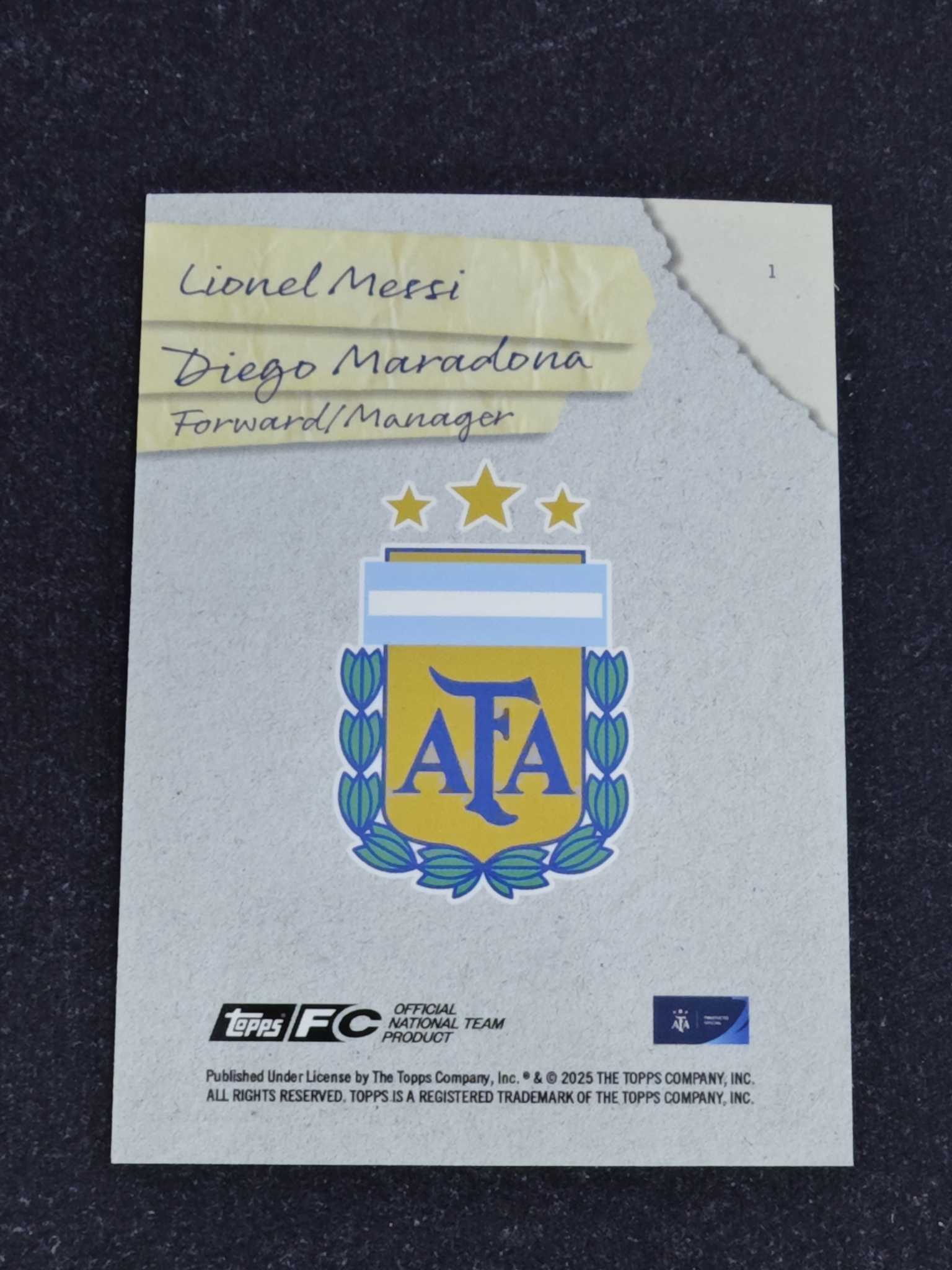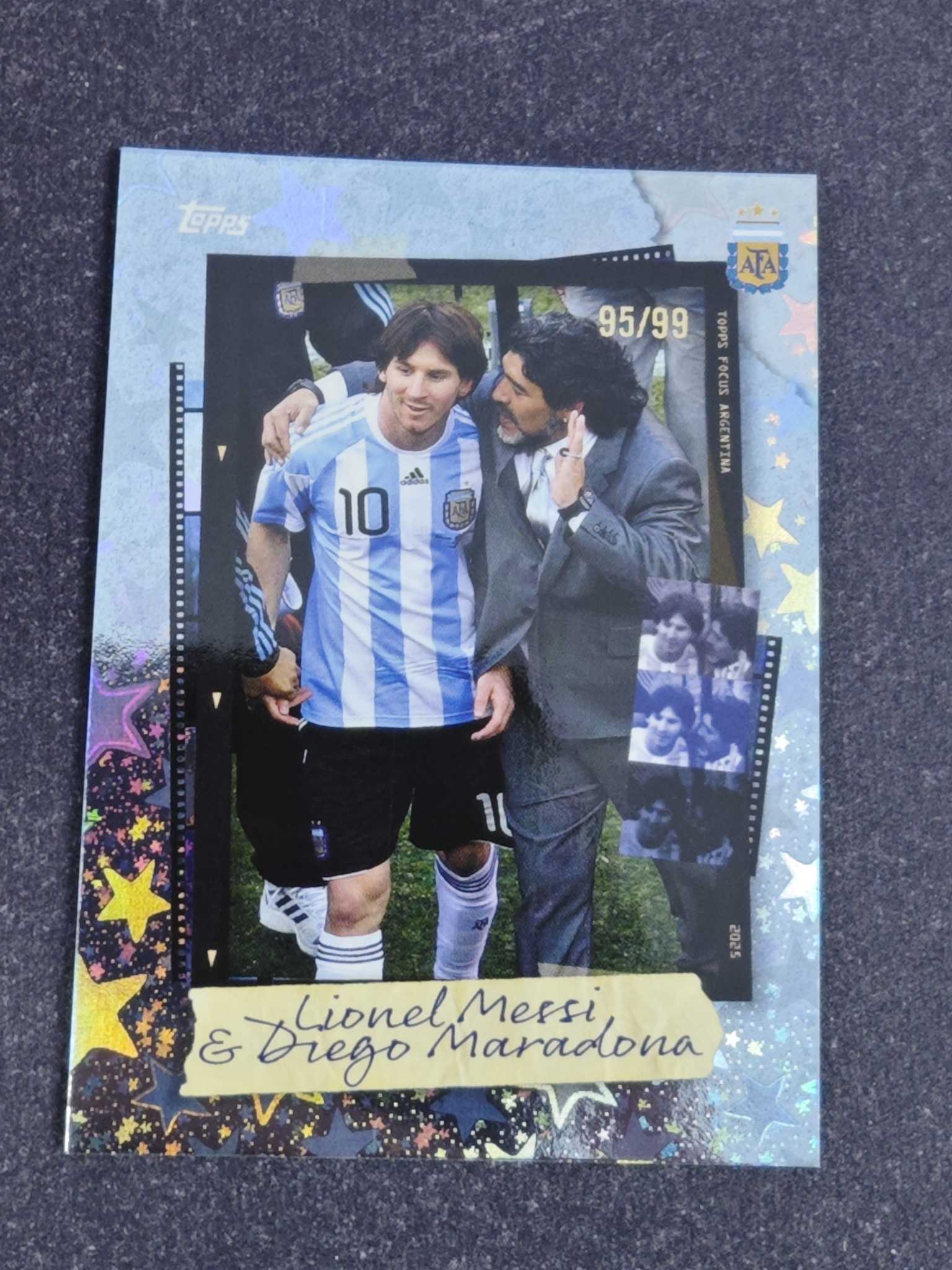2025 Topps Argentina Lionel Messi 【小灰机】阿根廷 聚焦队盒 梅西 马拉多纳 双人快照 95/99编 蓝彩虹平行 折射 瑕疵如图 老Q
