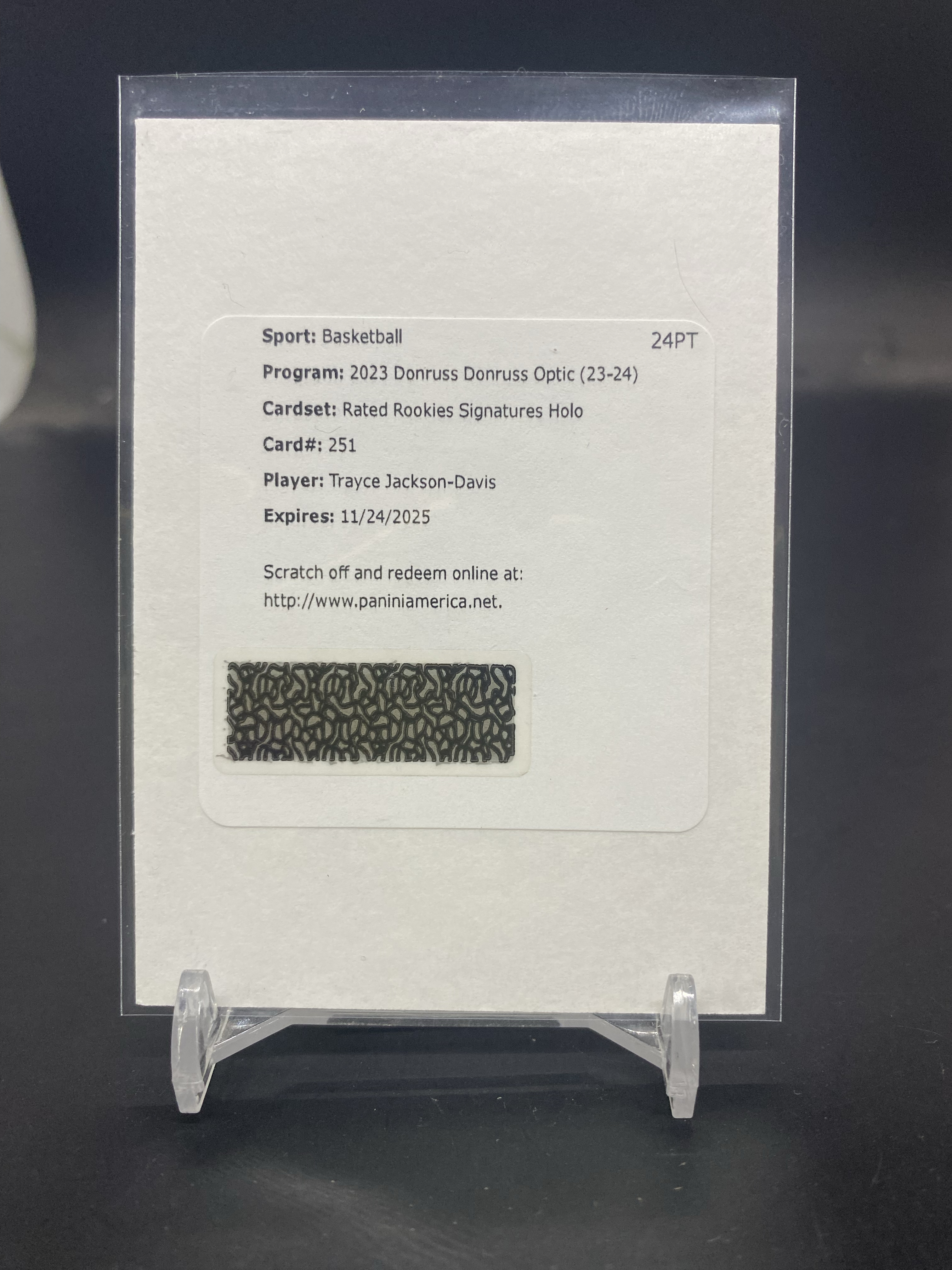 2023-24 Panini Optic Trayce Jackson Davis RC 勇士 杰克逊 戴维斯 土鸡蛋 Holo 银折 卡签 签字 签名 折射 交换板 只邮寄 11月24号过期「80」