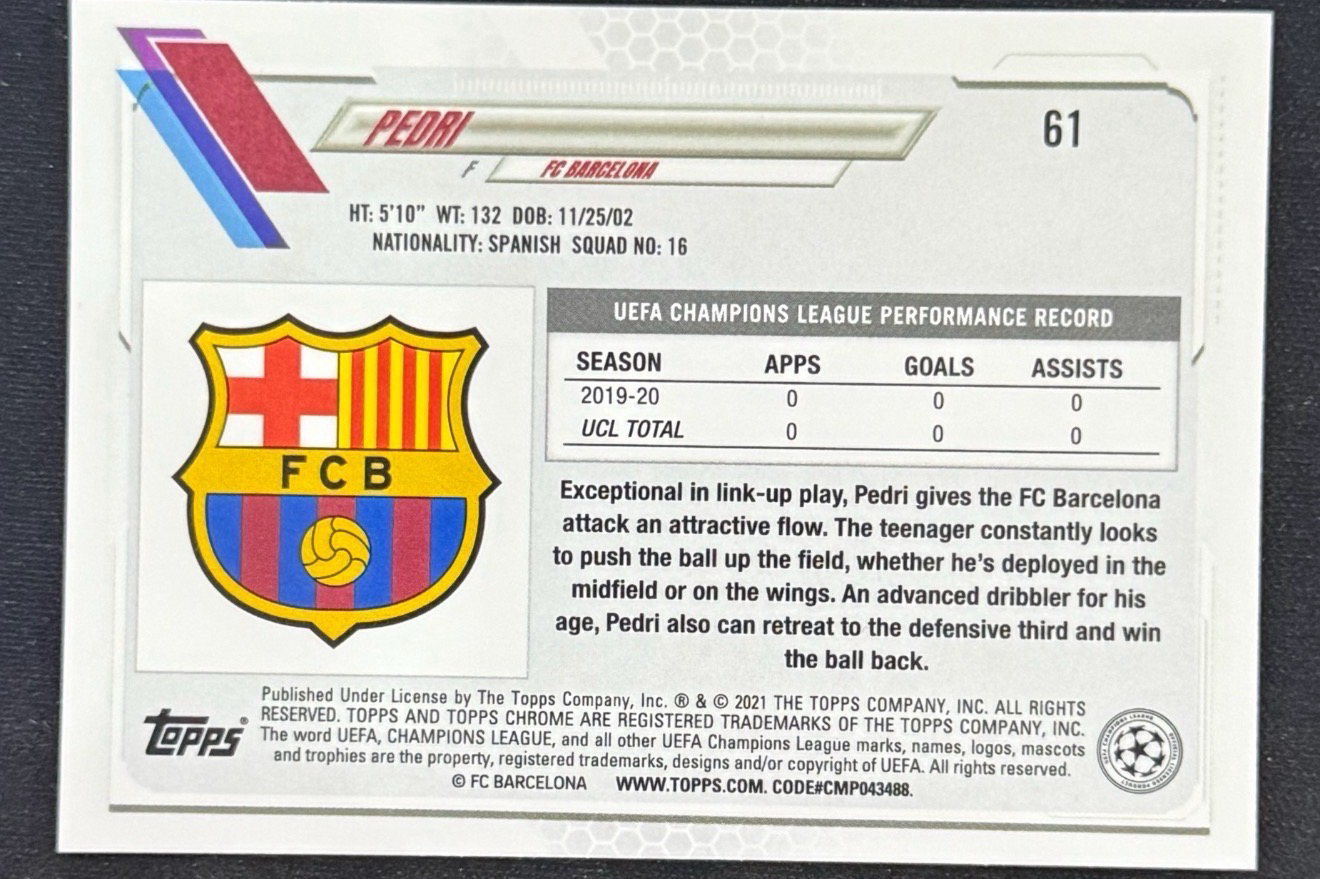 2021 Topps Chrome Pedri RC 欧冠TC 新秀 巴萨 佩德里 基础卡 base 实卡精美 收藏必备 卡品如图 只合当日运费