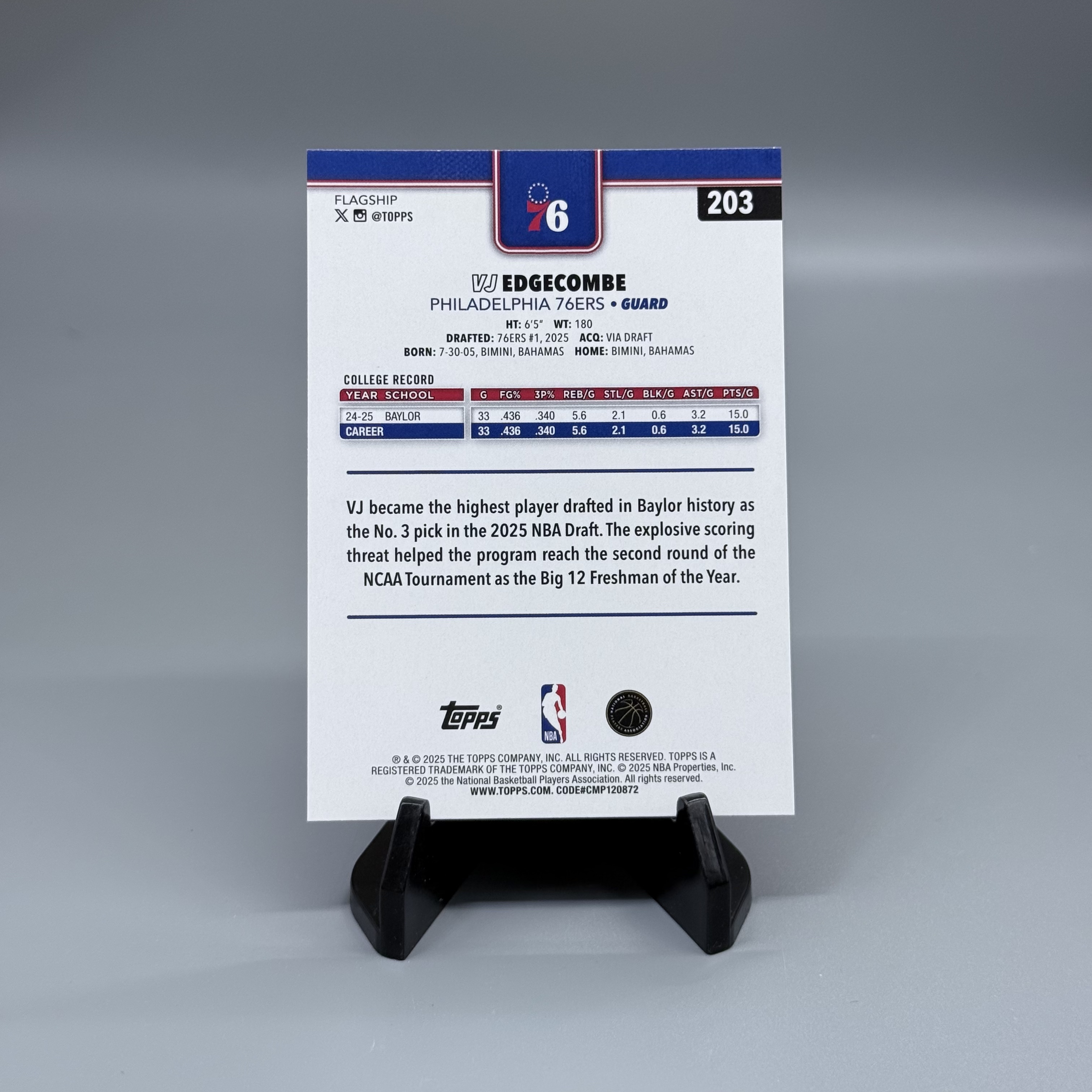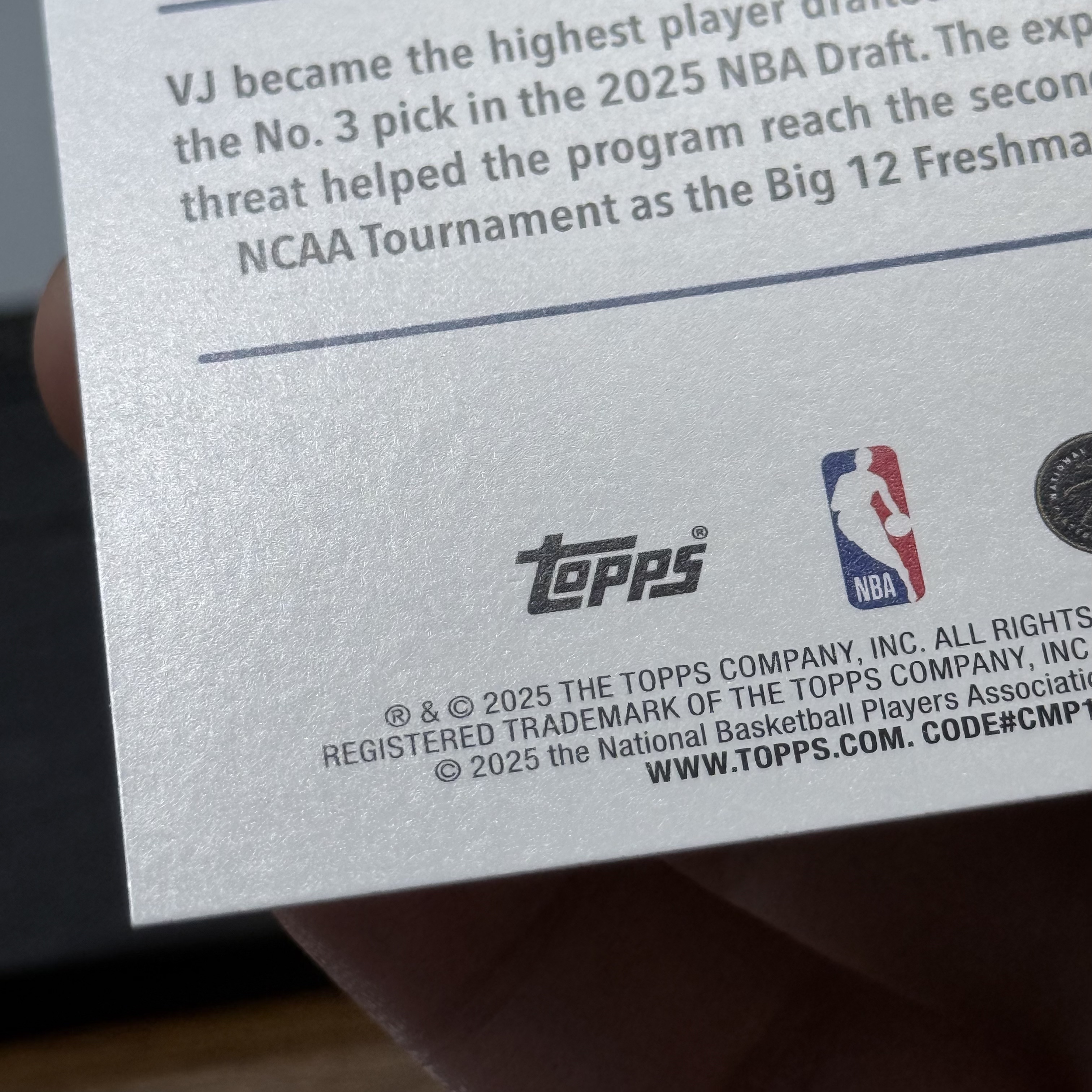 【UD代卖-炜112】2025-26 Topps NBA VJ Edgecombe RC 埃奇库姆 新秀 76人 正base #3 收藏必备 微瑕 卡品如图