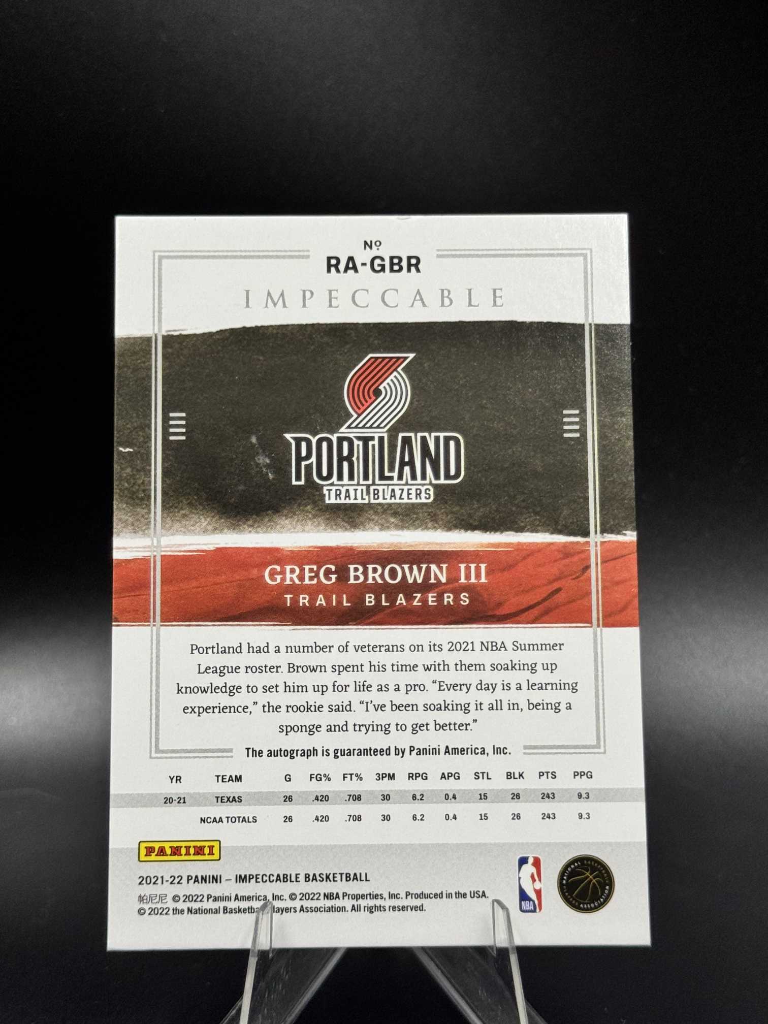2021-22 Panini Impeccable Greg Brown III 【小桃气拍卖】小真金 格雷格 布朗 三世 新秀 RC 签字 卡签 /99编 开拓者 微瑕如图 V530