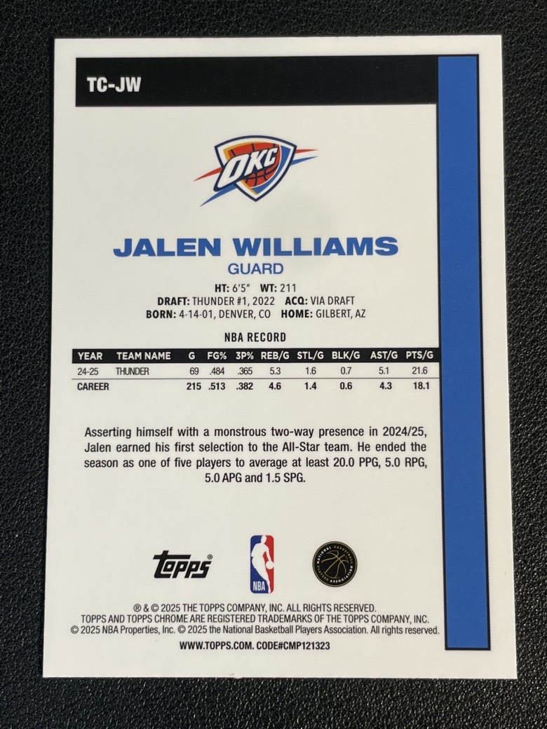 2025 Topps NBA Flagship Jalen Williams 337 杰伦 威廉姆斯 雷霆 1980复古 折射 银mojo折 实卡精美 卡品如图 尖叫代拍 pink
