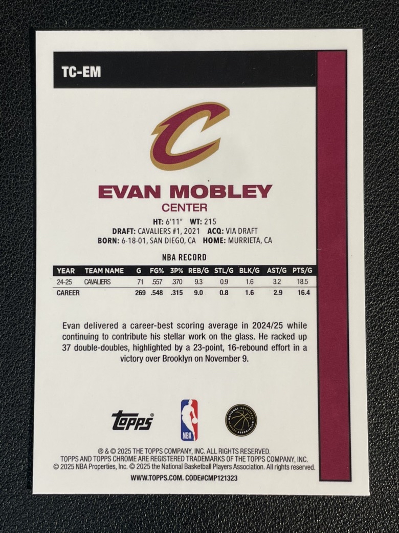 2025 Topps NBA Flagship Evan Mobley 346 埃文 莫布利 骑士 1980复古 折射 银mojo折 实卡精美 卡品如图 尖叫代拍 pink