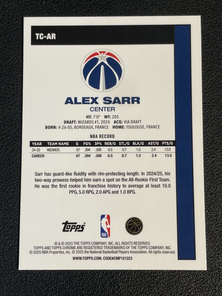 2025 Topps NBA Flagship Alex Sarr 365 亚历克斯 萨尔 奇才 1980复古 折射 银mojo折 卡品如图 尖叫代拍 pink