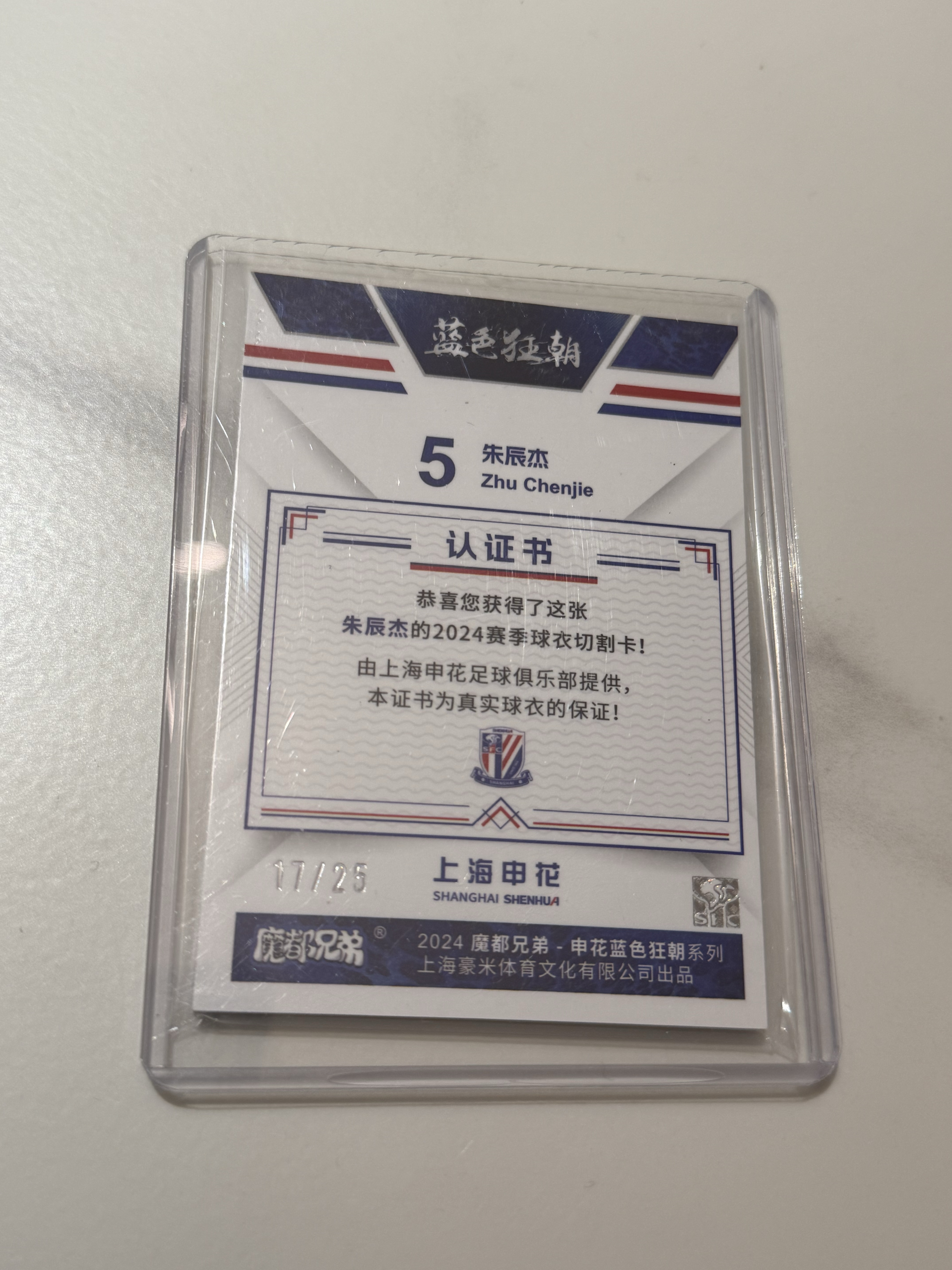 2024 魔都兄弟 蓝色狂朝 上海申花 朱辰杰 17/25编 球衣物料切割 卡品如图 A222