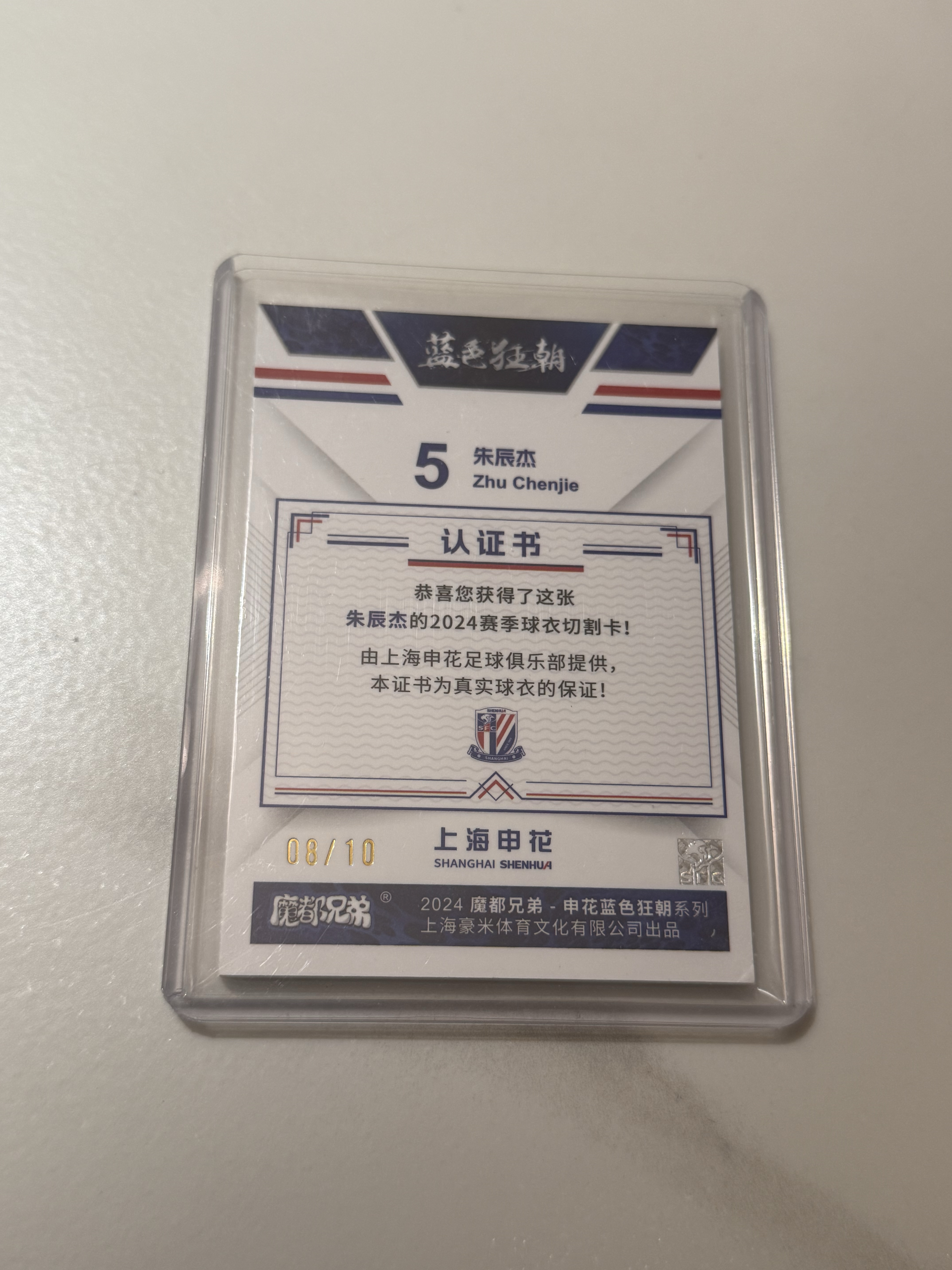 2024 魔都兄弟 蓝色狂朝 上海申花 朱辰杰 08/10编 金折 球衣物料切割 真字母切割 卡品如图 A222