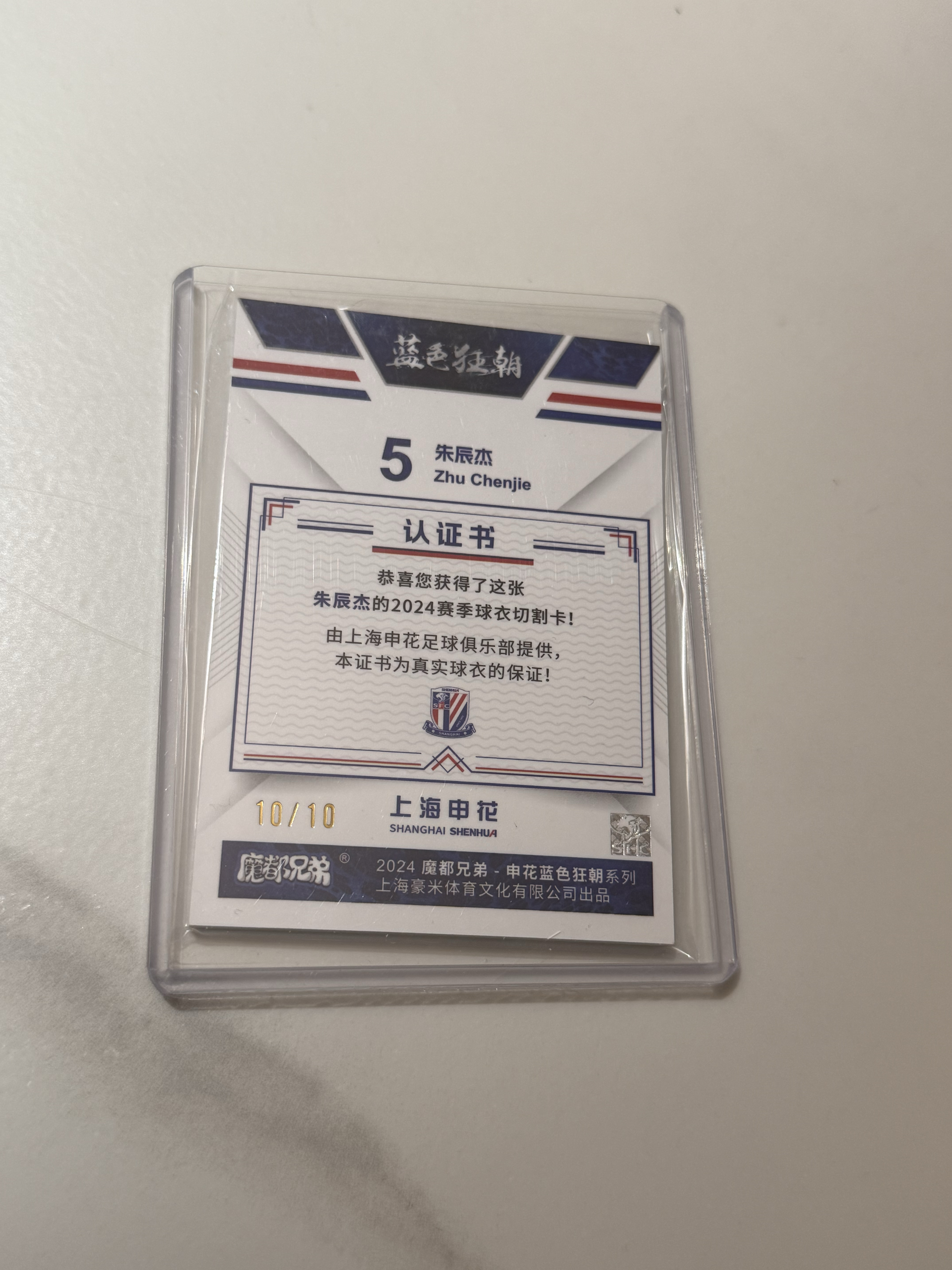 2024 魔都兄弟 蓝色狂朝 上海申花 朱辰杰 10/10尾编 金折 球衣物料切割 真字母切割 卡品如图 A222