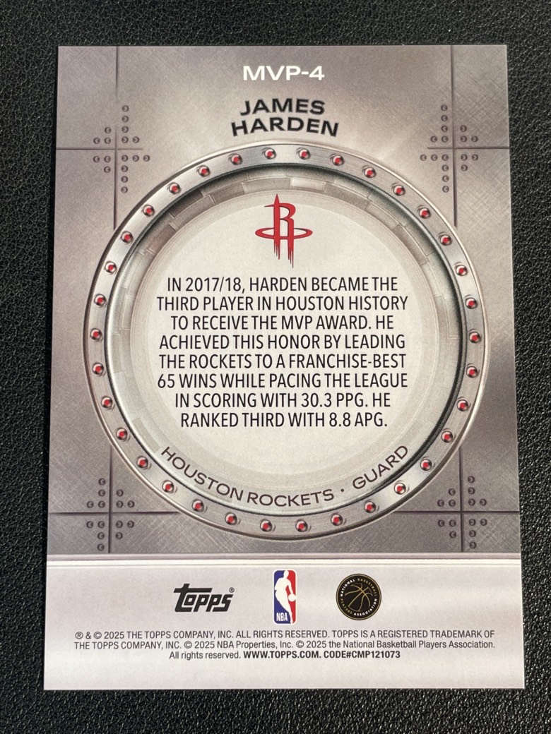 2025 Topps NBA Flagship James Harden 421 詹姆斯 哈登 火箭 MVP Vault 宝库特卡 折射 金折 50编 微瑕如图 卡品如图 尖叫代拍 pink