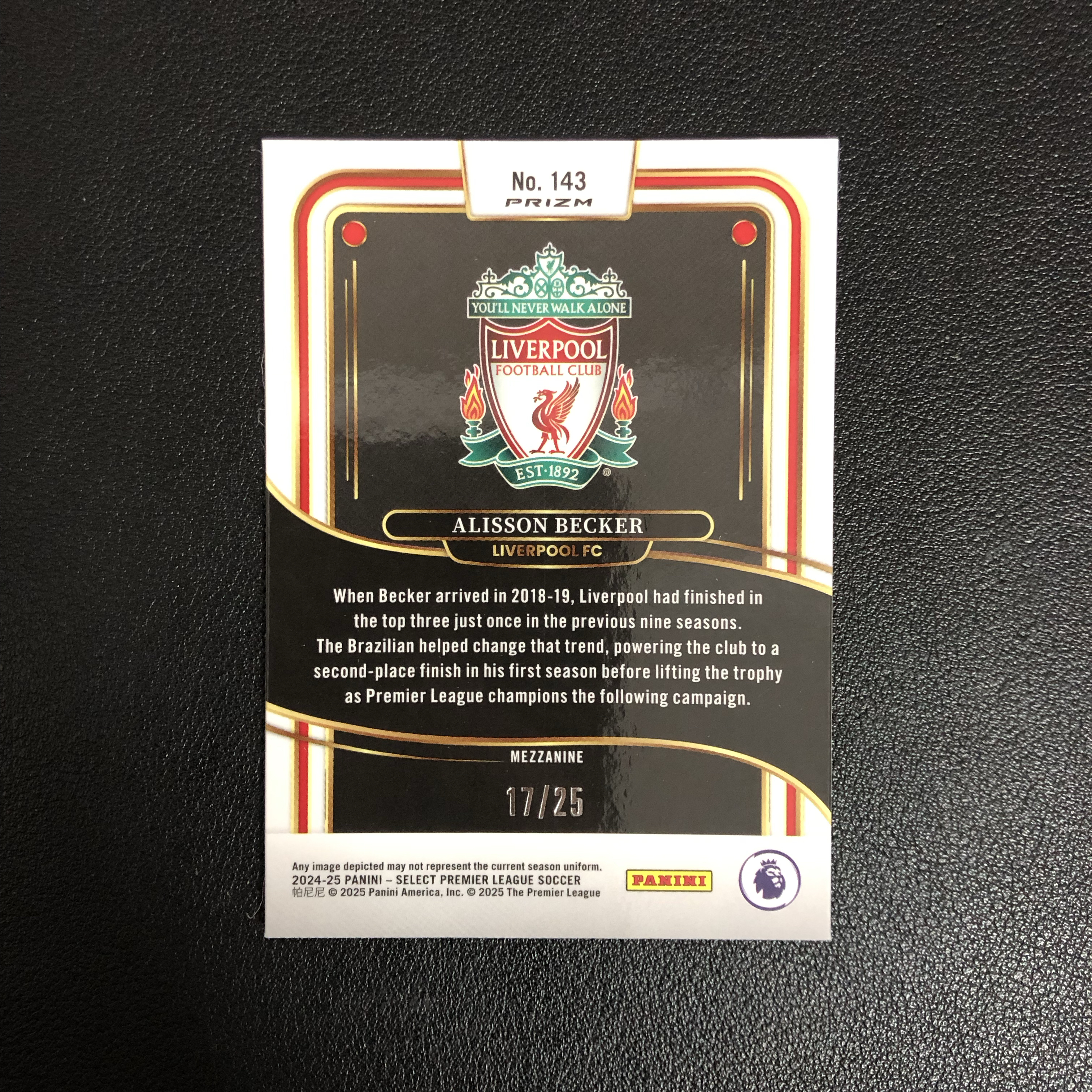 2024-25 Panini Select 英超 ALISSON BECKER 阿利松 17/25编 扎染折 利物浦 罗马 巴西 门神 利物浦专场 卡品如图 默认微瑕 收藏必备(zt)
