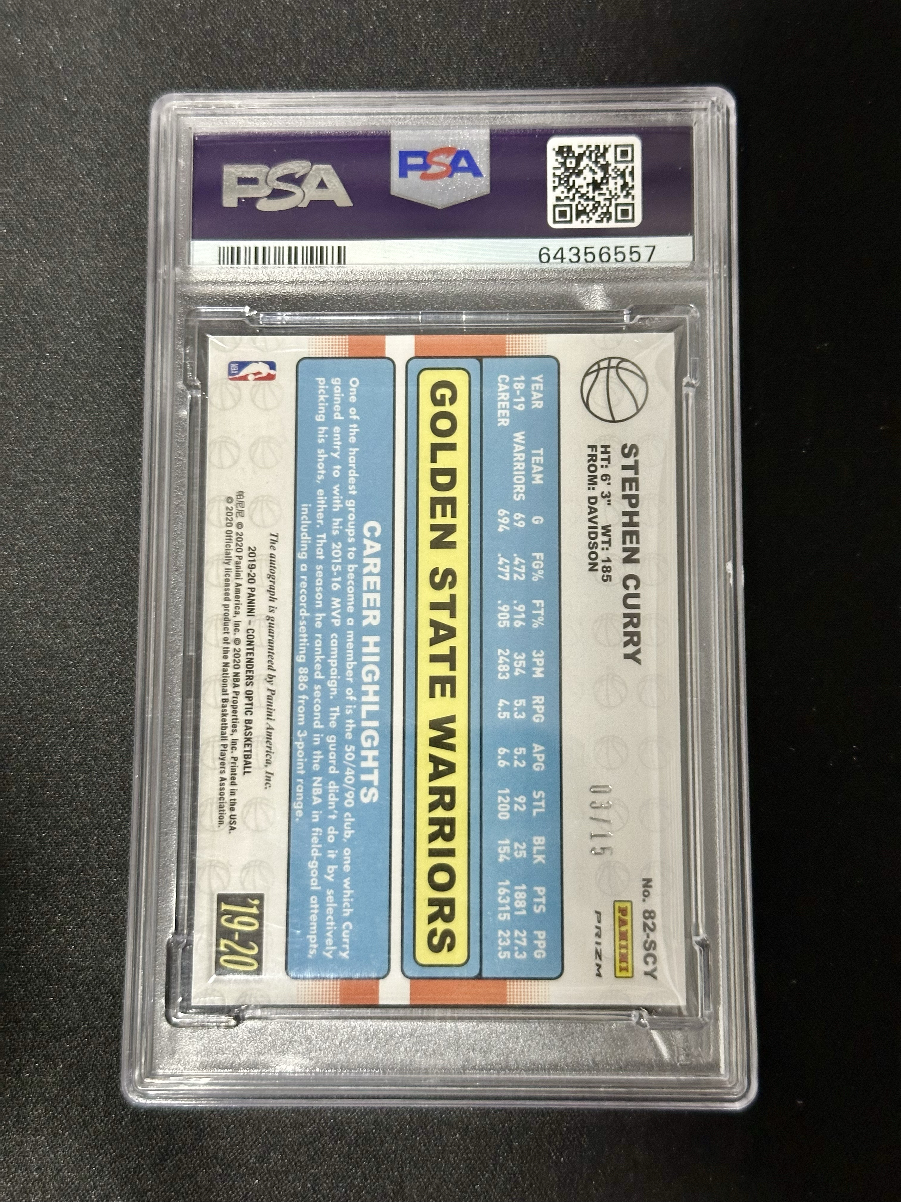 2019-20 Panini Contenders Optic Stephen Curry 球票op 勇士 斯蒂芬 库里 /15编 橙折 超低编 签字 卡签 1982复古签 PSA9/10分 POP2