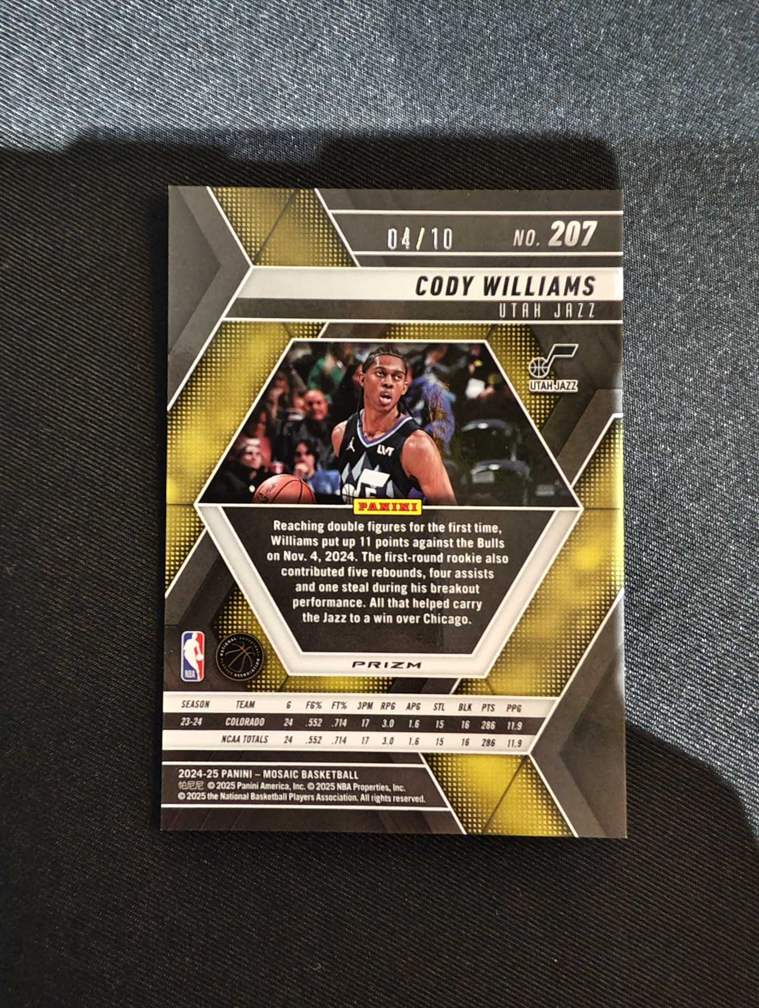2024-25 Panini Mosaic Cody Williams RC 马赛克 犹他爵士 新秀RC 科迪 威廉姆斯 老九 10编 低编 金折 金马赛克折 未来可期 卡品如图