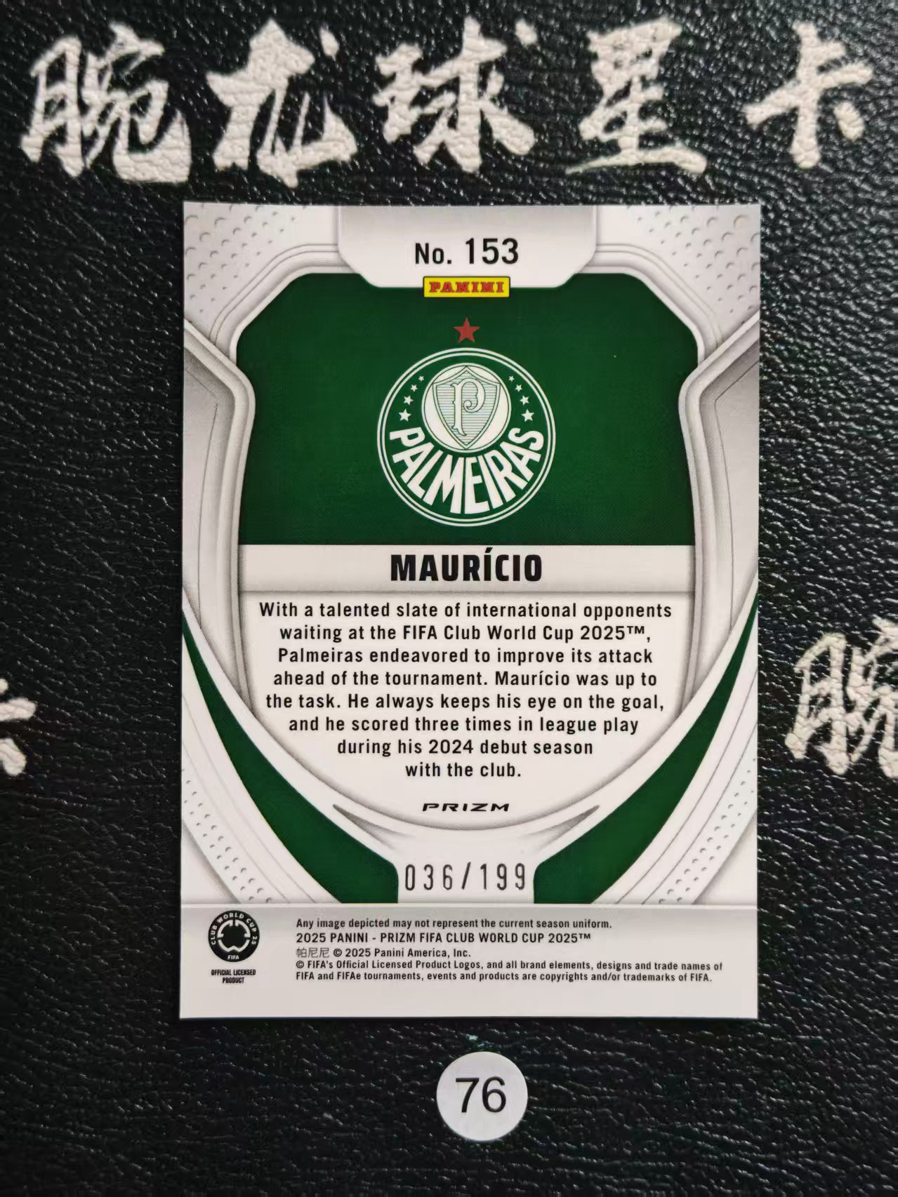2025 【腕龙拍卖 接代卖】 腕龙夏总AO6 Panini Prizm 世俱杯 PZ 毛里西奥 帕尔梅拉斯 RC新秀 红折 36/199编 MAURICIO 卡品如图
