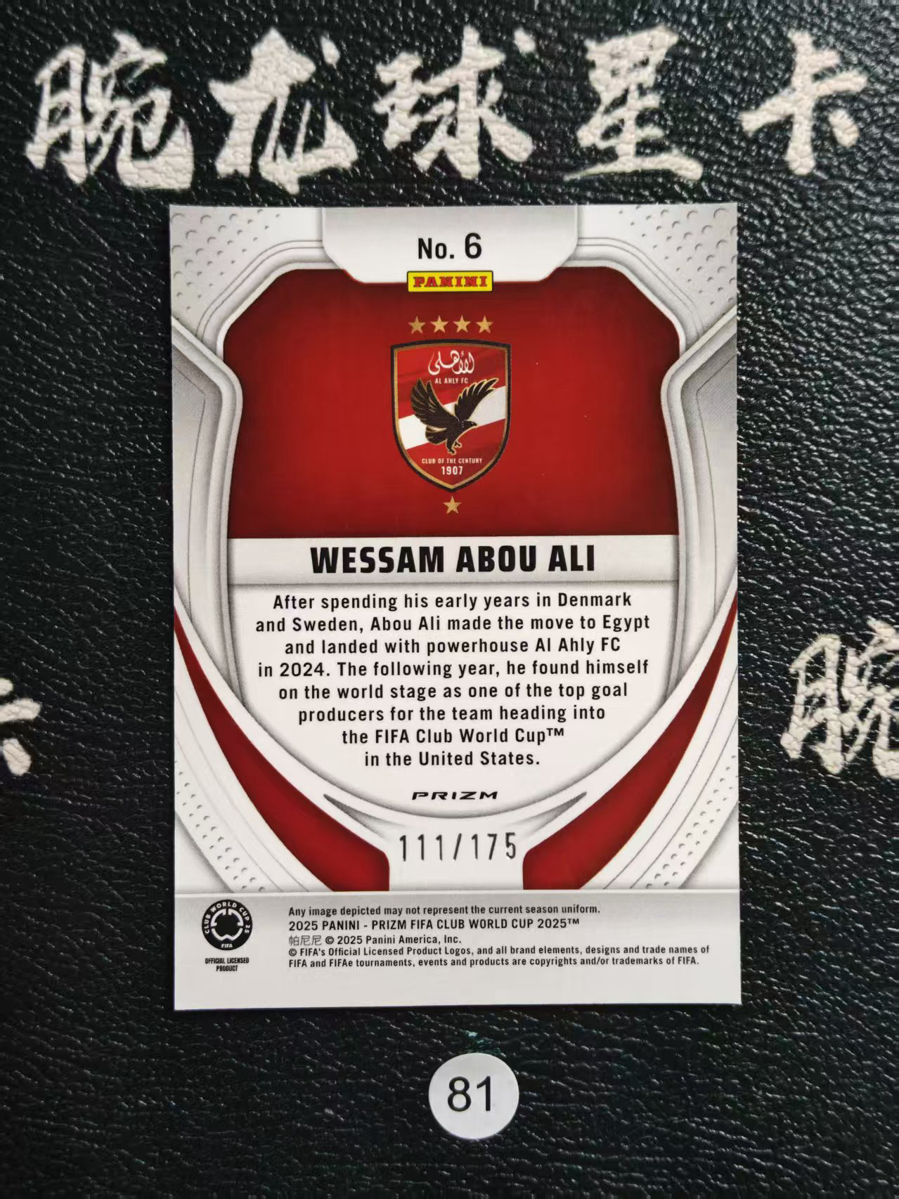 2025 【腕龙拍卖 接代卖】 腕龙夏总AO6 Panini Prizm 世俱杯 PZ 韦萨拉 阿布 阿里 开罗国民 RC新秀 蓝碎冰折 111/175编 WESSAM ABOU ALI 卡品如图