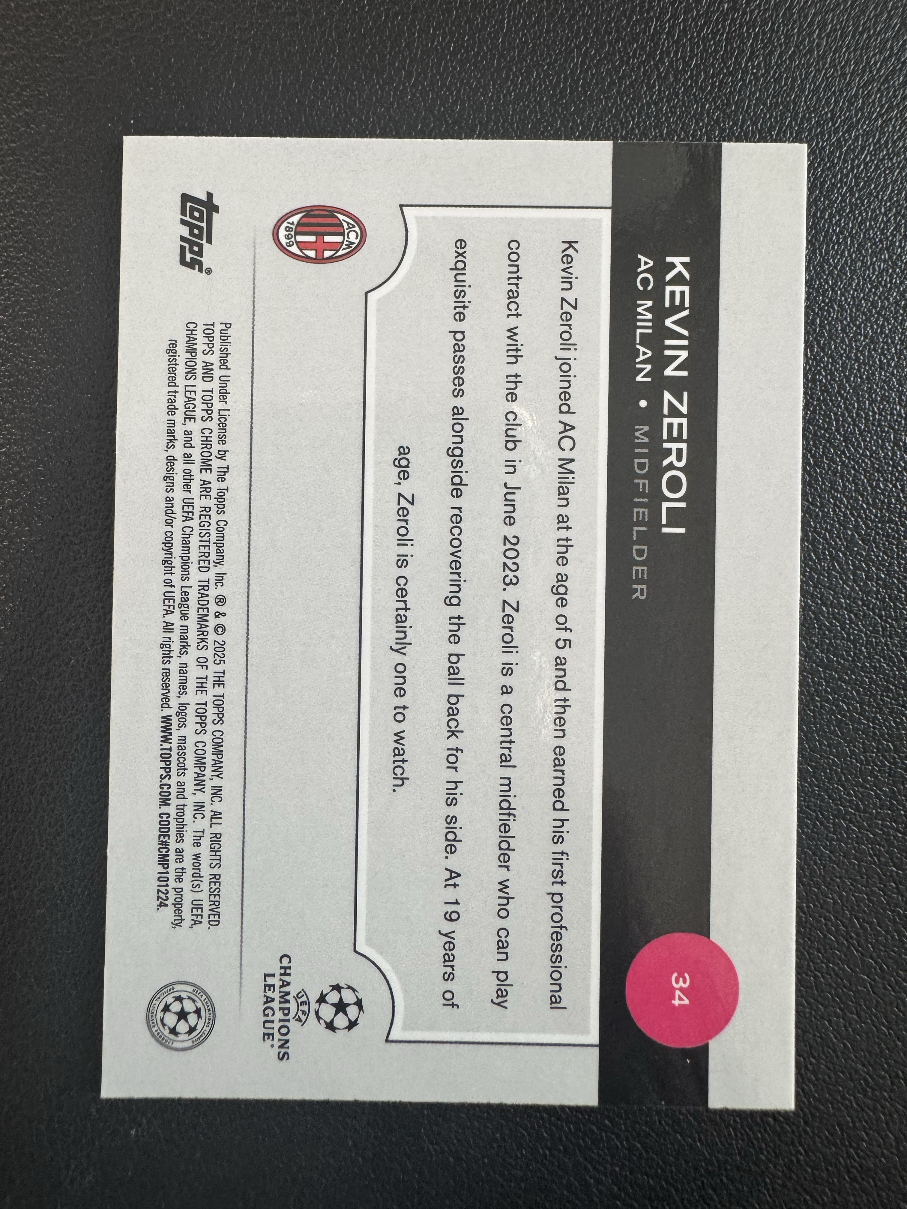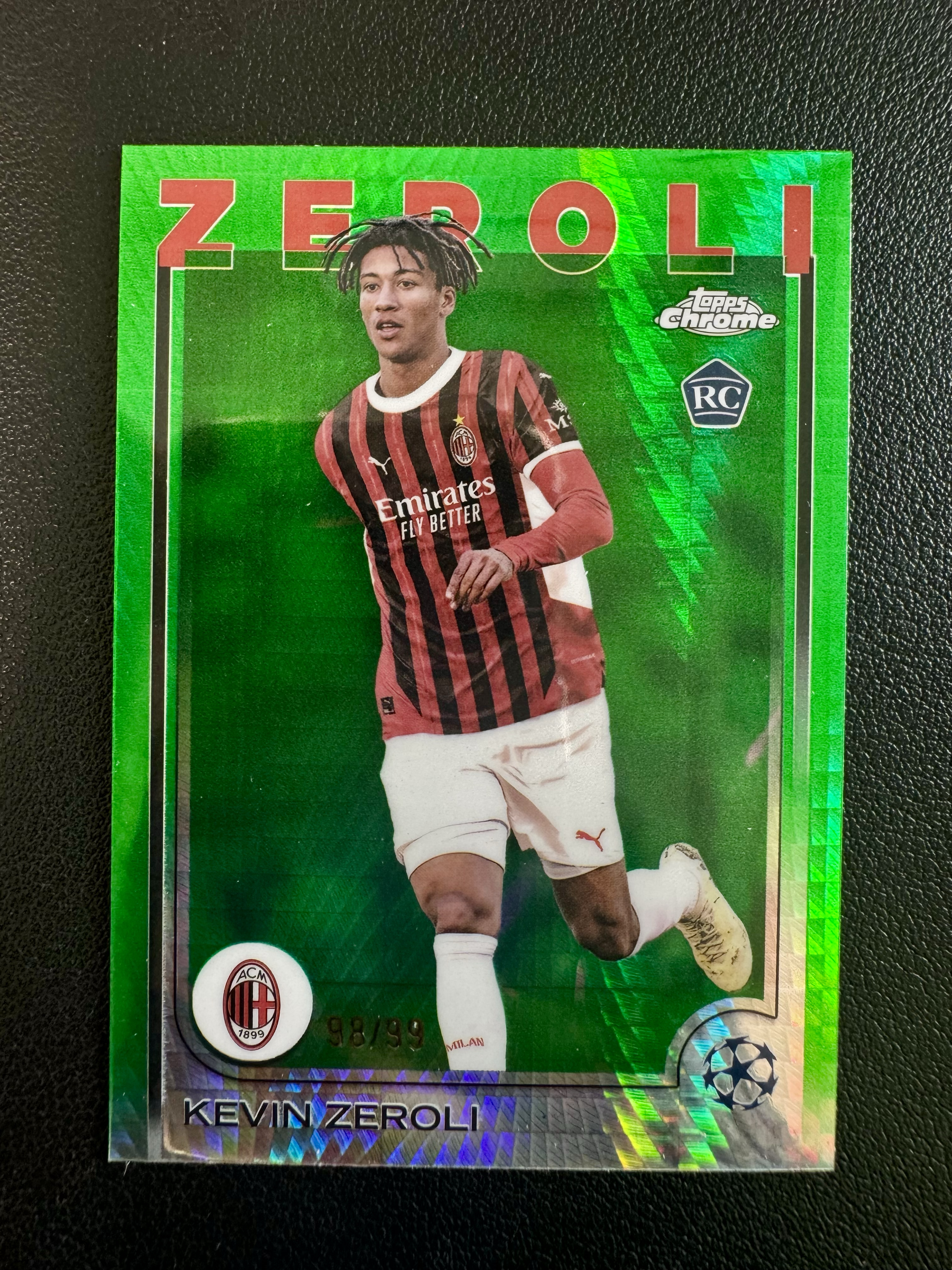 2025 Topps Chrome Kevin Zeroli RC 【0手续费代卖】凯文 泽罗利 新秀 带编 99编 意大利 AC米兰 蒙扎 特卡 绿折 卡品如图(贝壳)