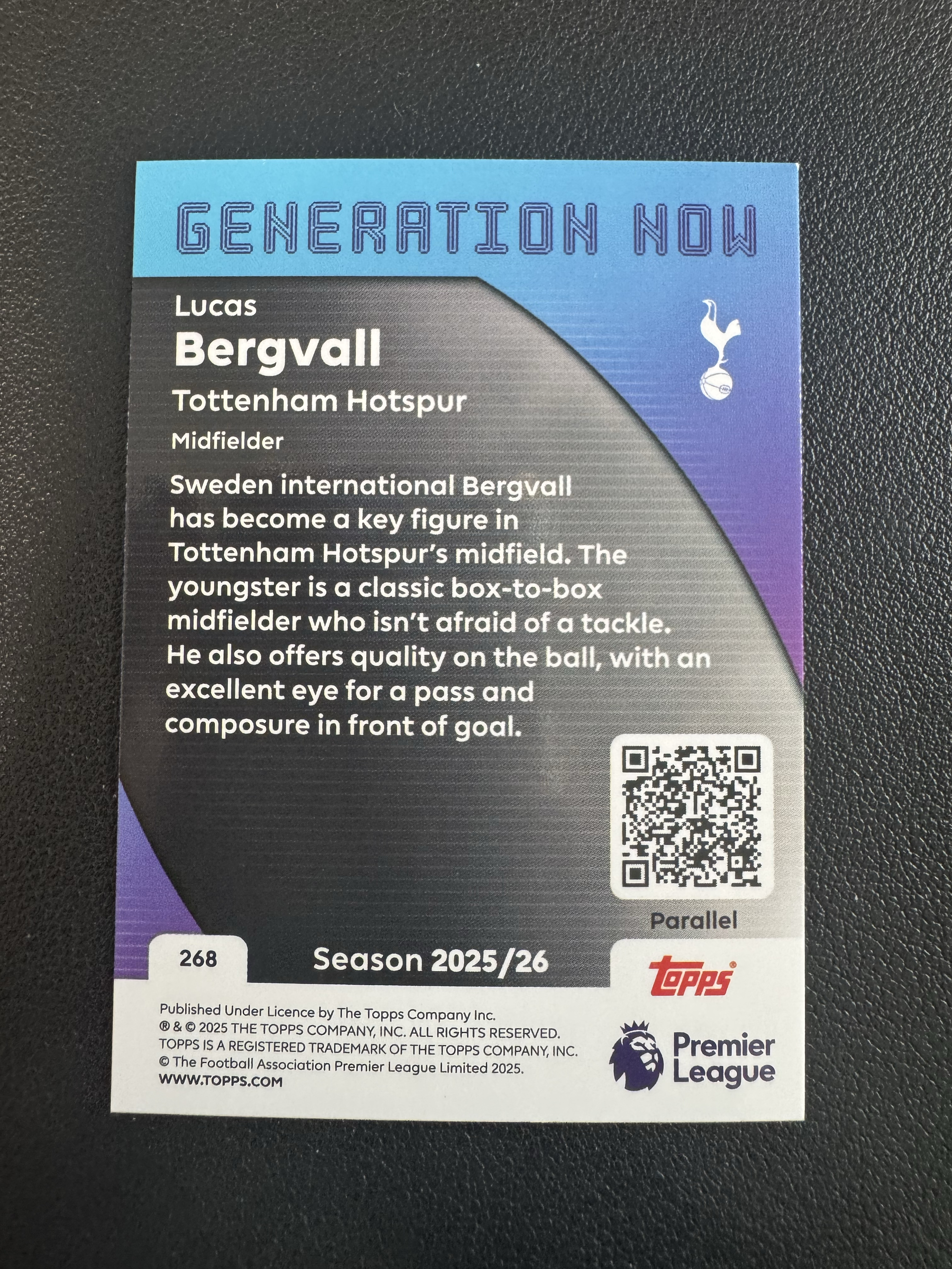 2025-26 Topps Premier Lucas Bergvall 【0手续费代卖】卢卡斯 贝里瓦尔 带编 199编 瑞典 热刺 特卡 折射 卡品如图(贝壳)