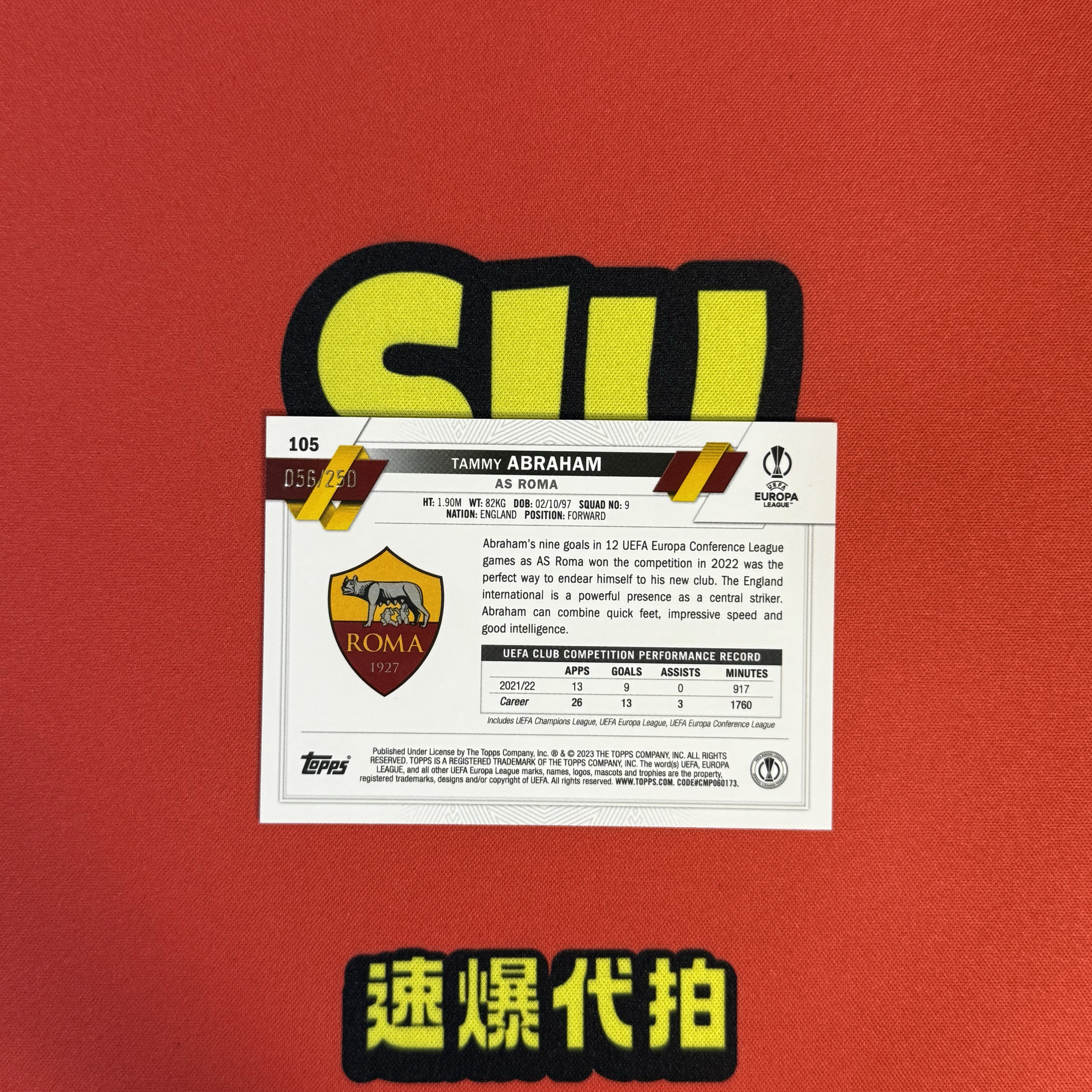 2022-23 Topps Chrome Tammy Abraham 意甲 罗马 亚伯拉罕 TC 056/250编 粉格子折 卡品如图 zzz 【速爆代拍】