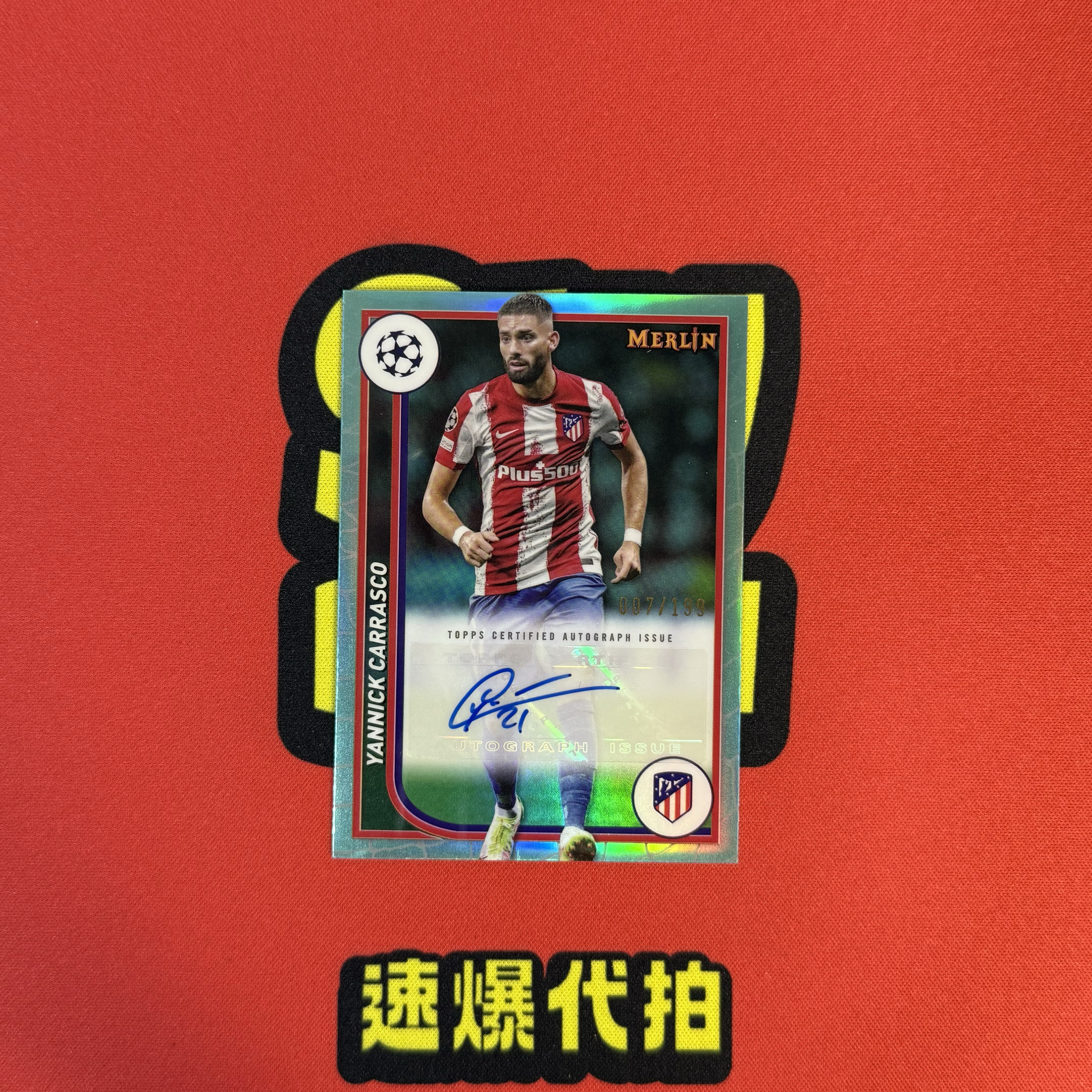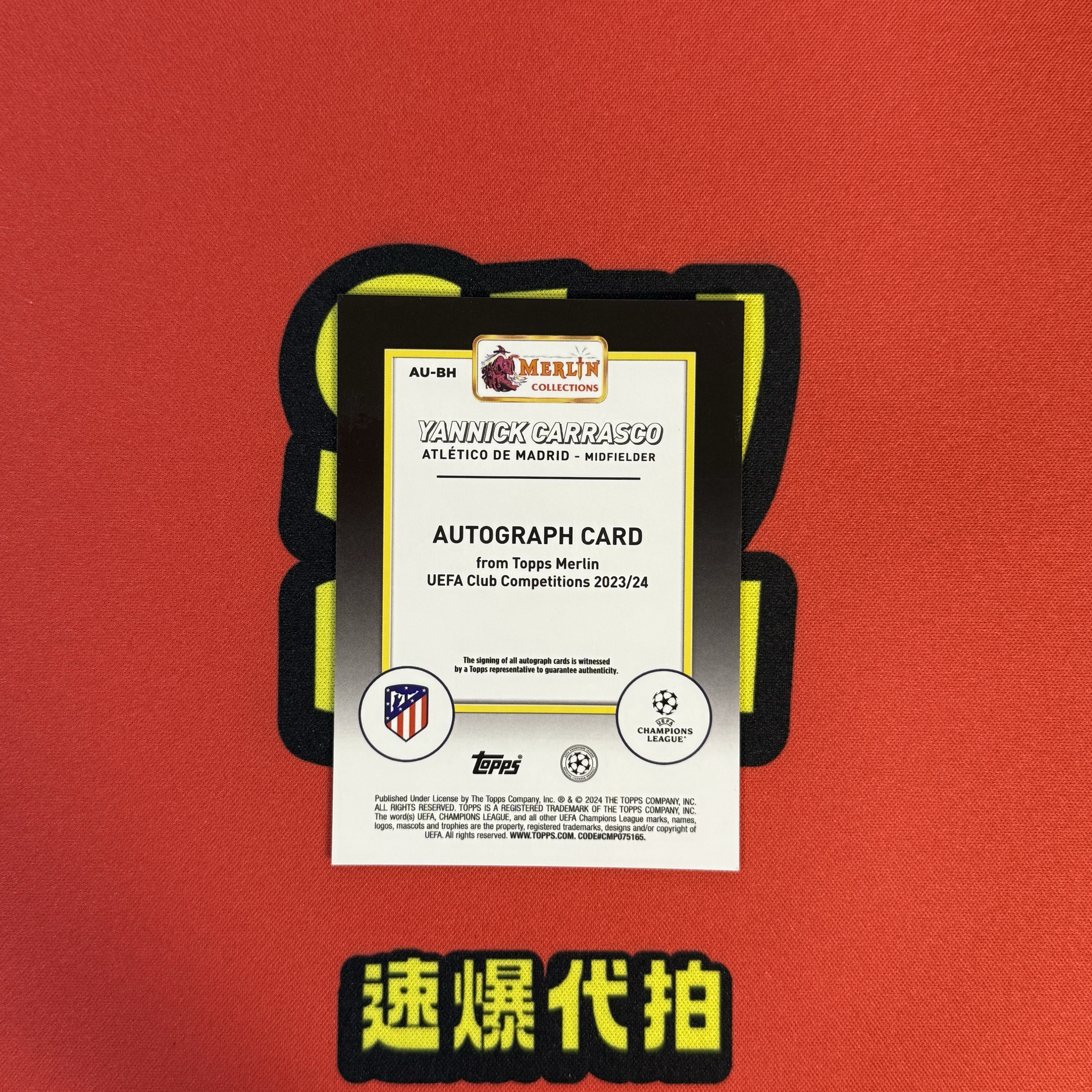 2023-24 Topps Merlin chrome Yannick Carrasco 西甲 马德里竞技 卡拉斯德 梅林 007/199编 签字 青折 卡品如图 zzz 【速爆代拍】
