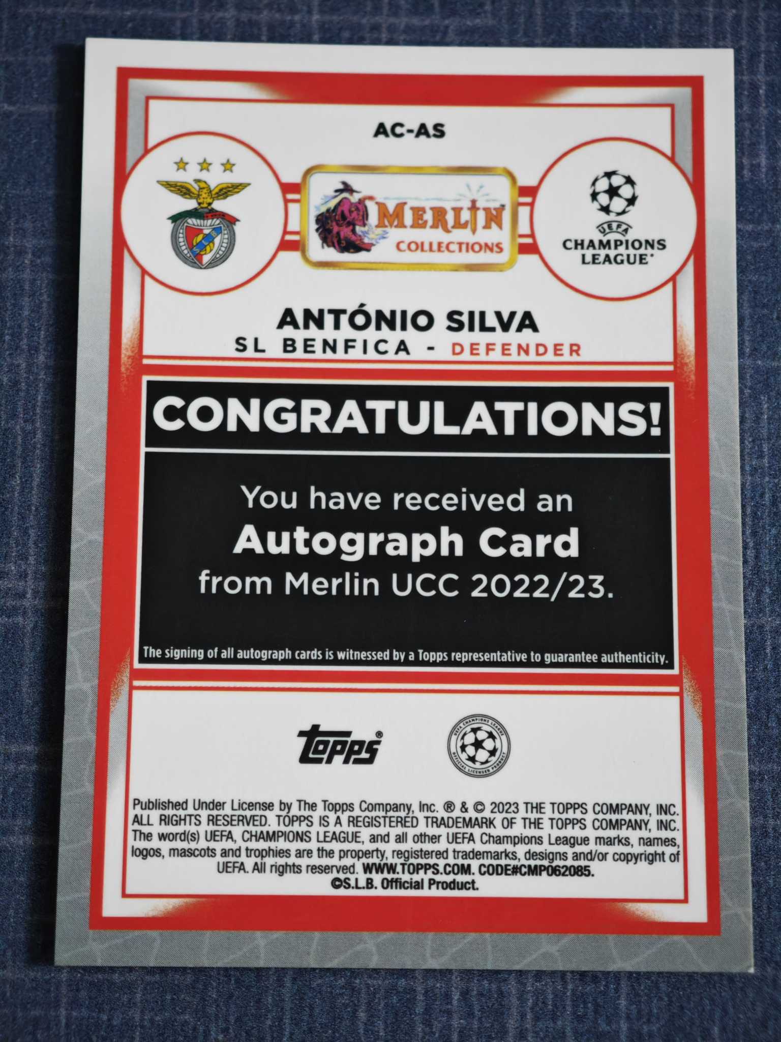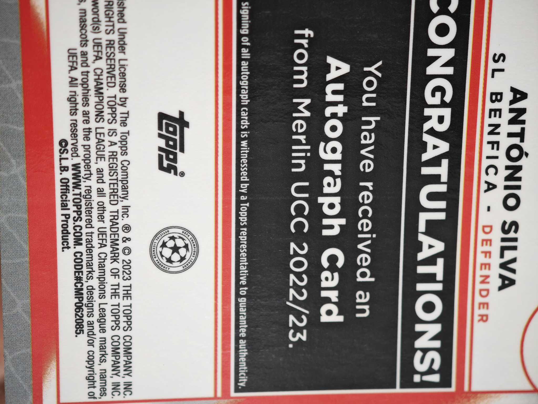 2022-23 Topps Merlin chrome Antonio Silva RC 【小灰机】欧冠 梅林 葡萄牙 本菲卡 安东尼奥 席尔瓦 新秀 签字 银折 豪门猎物 瑕疵如图 4521