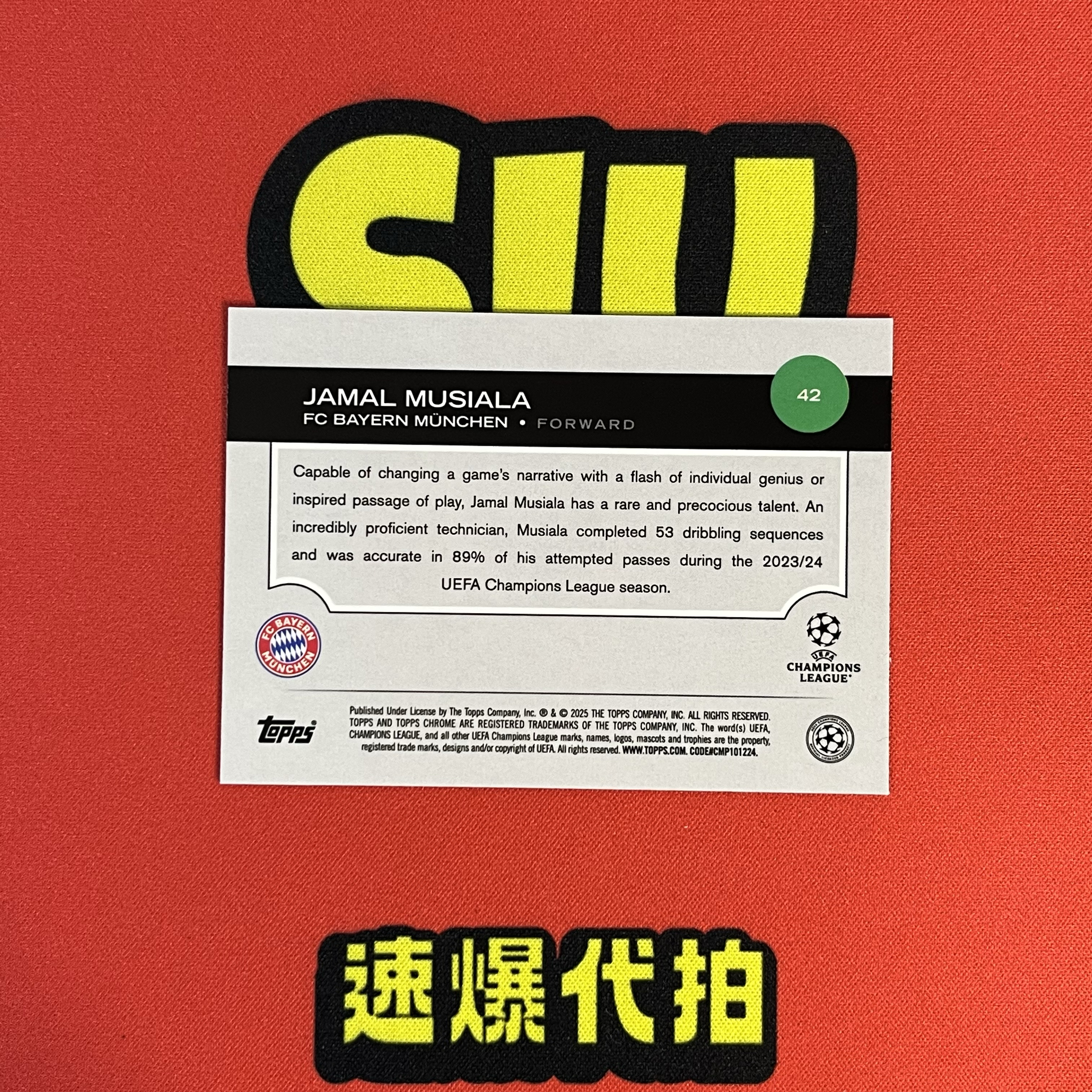 2024-25 Topps Chrome Jamal Musiala 德甲 拜仁慕尼黑 穆夏拉 TC 042/175编 同背 折射 穆西亚拉 德国 德甲冠军 欧冠 卡品如图 耗儿 【速爆代拍】