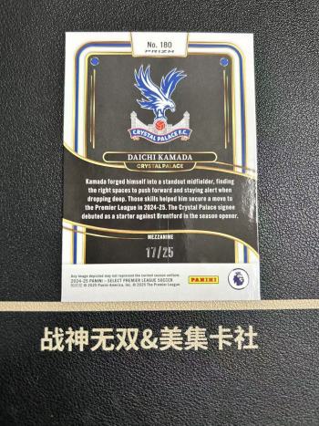 零手续费接代拍(只收卡淘5%),上拍迅速..支持预付..服务至上..专业省心..回款无忧.. 详询客服微信 17616200100每晚9:30左右合并订单,次日订单不合并,只去运费不累计!不累计!拍后请于三日内合并后付款,超时鸽子投诉举报!打包不易工作量大,降低容错率,拒绝到付!拒绝到付!望老板们理解。默认顺丰寄付18元,新疆、西藏、港澳台默认到付千元以上卡片建议保价!!!请站内信留言,未保价卡片如遇丢件及破损问题请自行与快递公司解决,本店概不负责如需更改地址请在支付界面地址栏直接更改,付款后如需更改地址需先给“提货码”,不能给提货码一律按订单默认地址发出关于卡品问题,出价默认为认同卡品。拍前请仔细查看并及时和客服沟通小划痕,印刷线,卡面出厂弯曲,常见厚卡白边白角等现象都属于二手物品通行品相,明显瑕疵都会注明。原封砖内卡品不保。卡片截标后不提供图片如有需求请在出价前提出,客服会提供更多图片方便查看。以实物图为准,完美主义者勿扰本店会认真打包每个快递并且留有打包视频,请务必签收前确认并提供拆箱视频和快递包裹破损视频,以便后续维权处理单卡价值20元以上标配卡夹或卡砖,图片仅包含单卡,LOT不配有任何卡具,如需购买全新卡具请联系客服祝老板们玩卡愉快,有问题请及时联系客服,欢迎沟通交流~