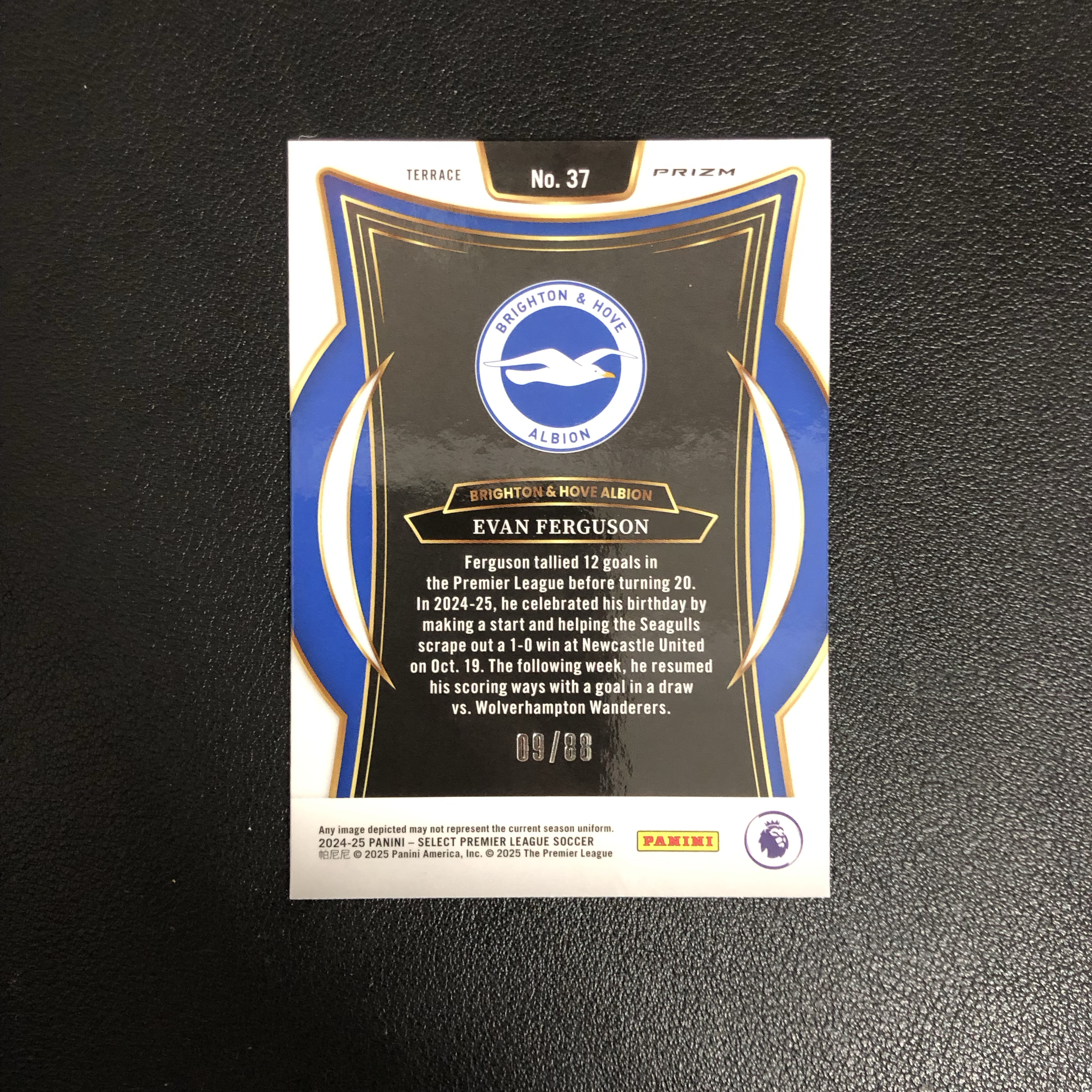 2025 panini prizm select 英超 埃文·弗格森(Evan Ferguson)  布莱顿  海鸥 罗马 09/88编 红波纹折 卡品如图 默认微瑕 收藏必备(fhz)