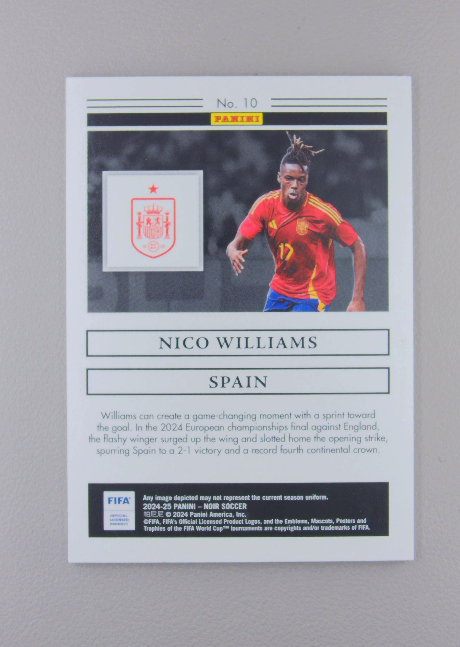 2024-25 Panini Noir Nico Williams 尼科 威廉姆斯 80编 毕尔巴鄂竞技 欧洲杯冠军 西班牙 诺尔系列 诺尔 战神无双拍卡 (少年)