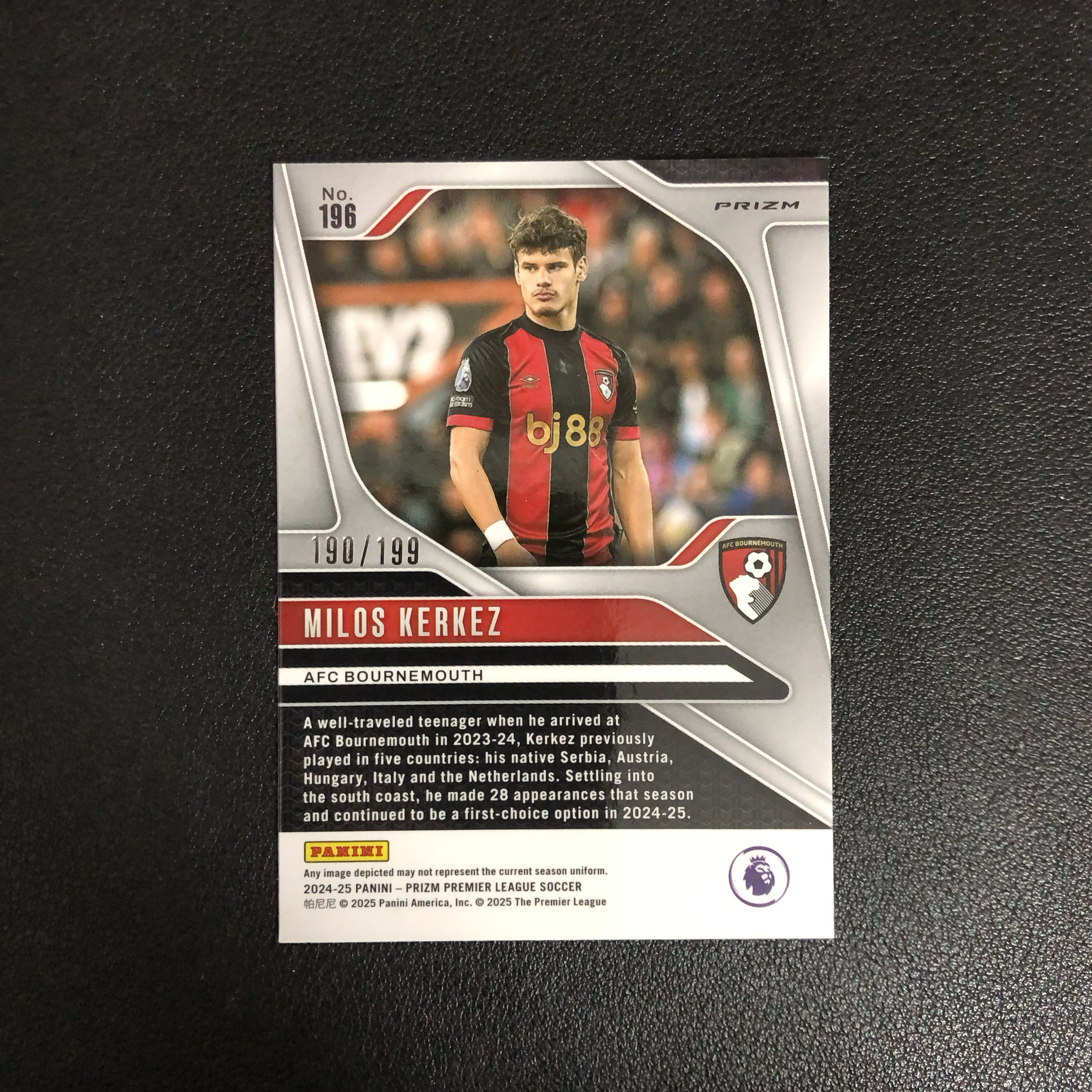 2024-25 Panini Prizm Milos Kerkez 英超PZ系列 伯恩茅斯 科尔克兹 红折射red 190/199编 利物浦新援 ColorMatch 卡品如图 收藏必备(wzx)
