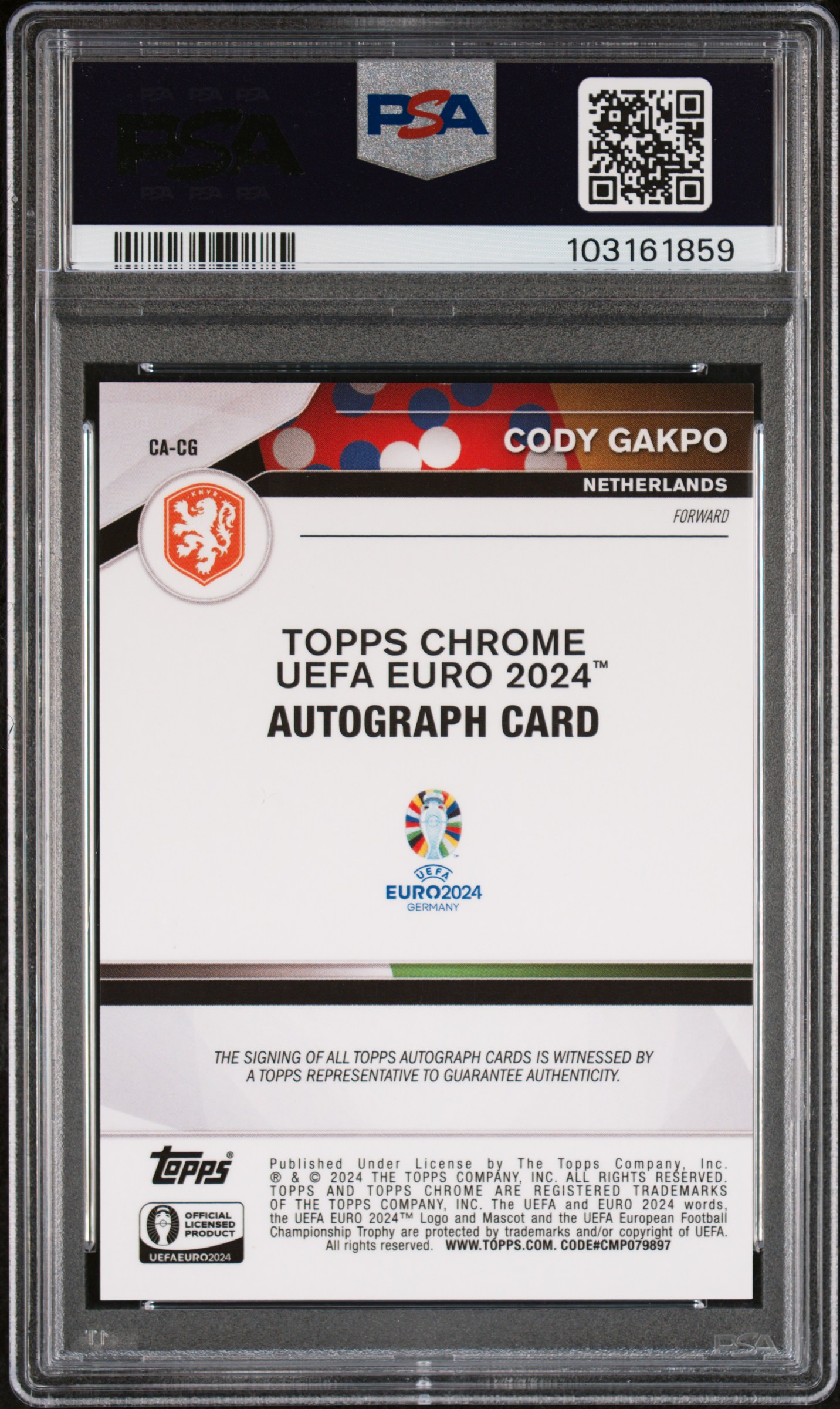 2024 Topps Chrome Cody Gakpo 加克波 PSA10 双10 签字 10编 欧洲杯元年 POP1 荷兰 利物浦 神锋