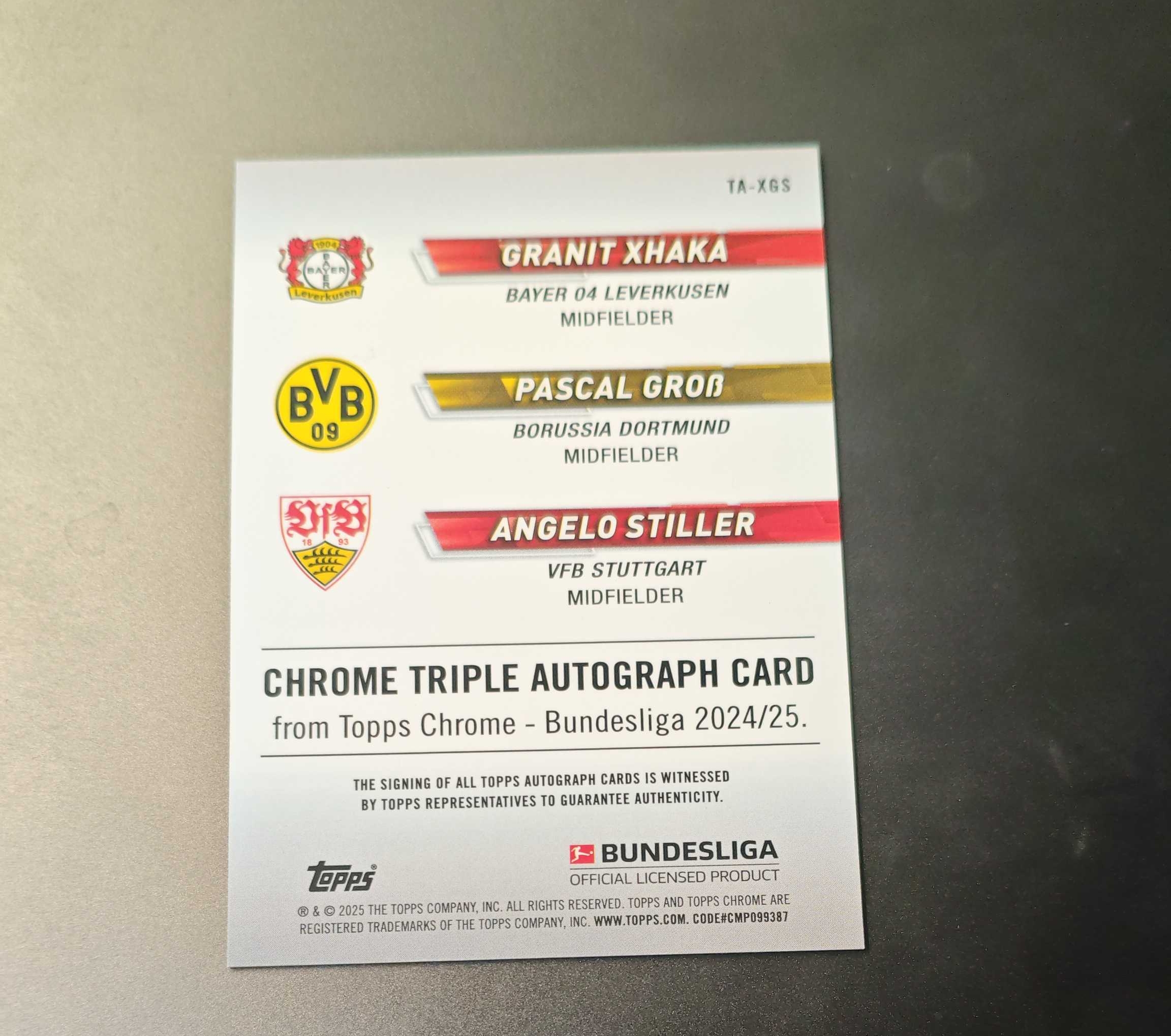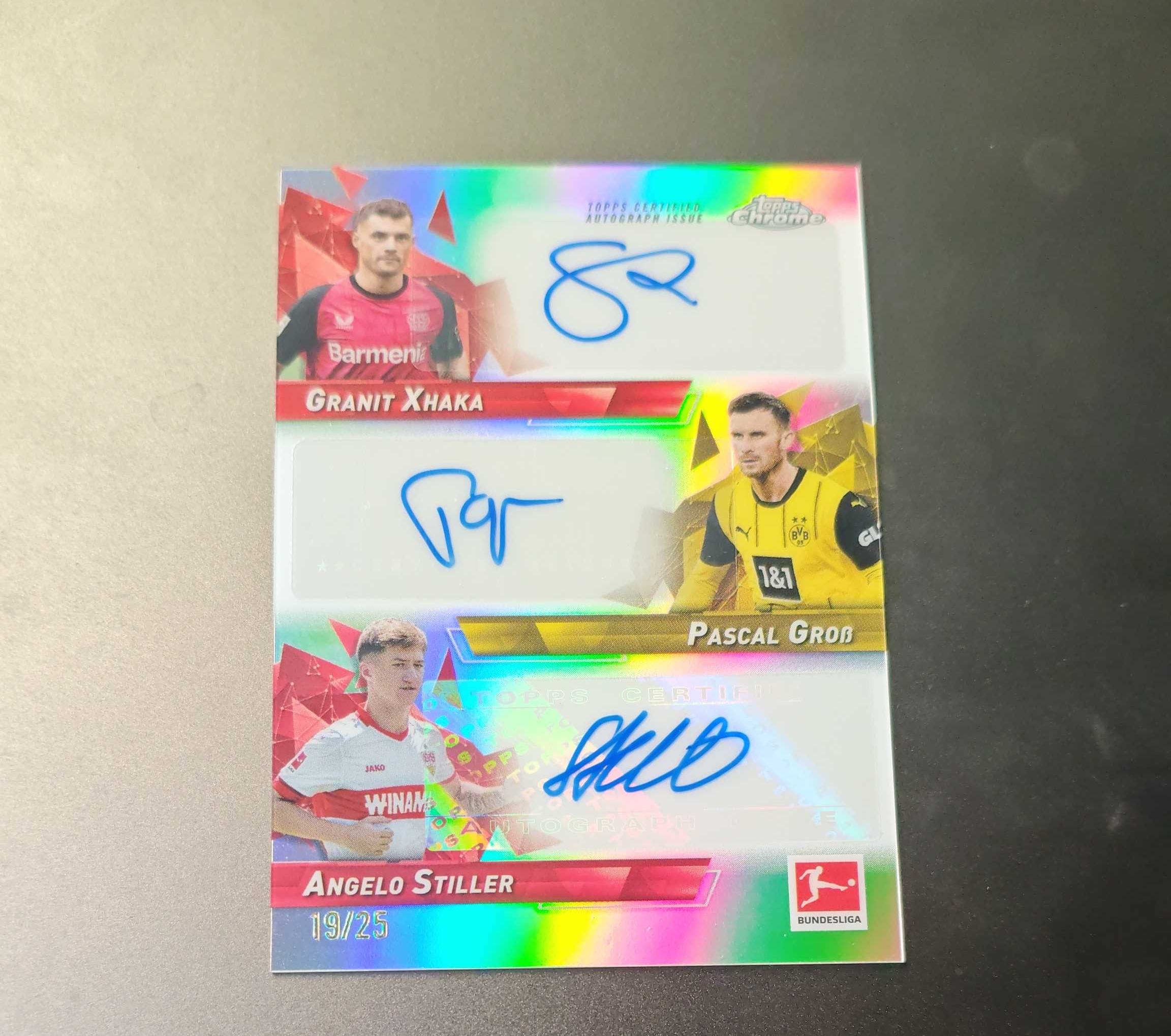 2024-25 Topps Chrome 德甲tc 格兰特 扎卡 帕斯卡尔 格罗斯 安杰洛 施蒂勒 三人签字 三签 银折 19/25编 卡品如图 Hit猫YAN