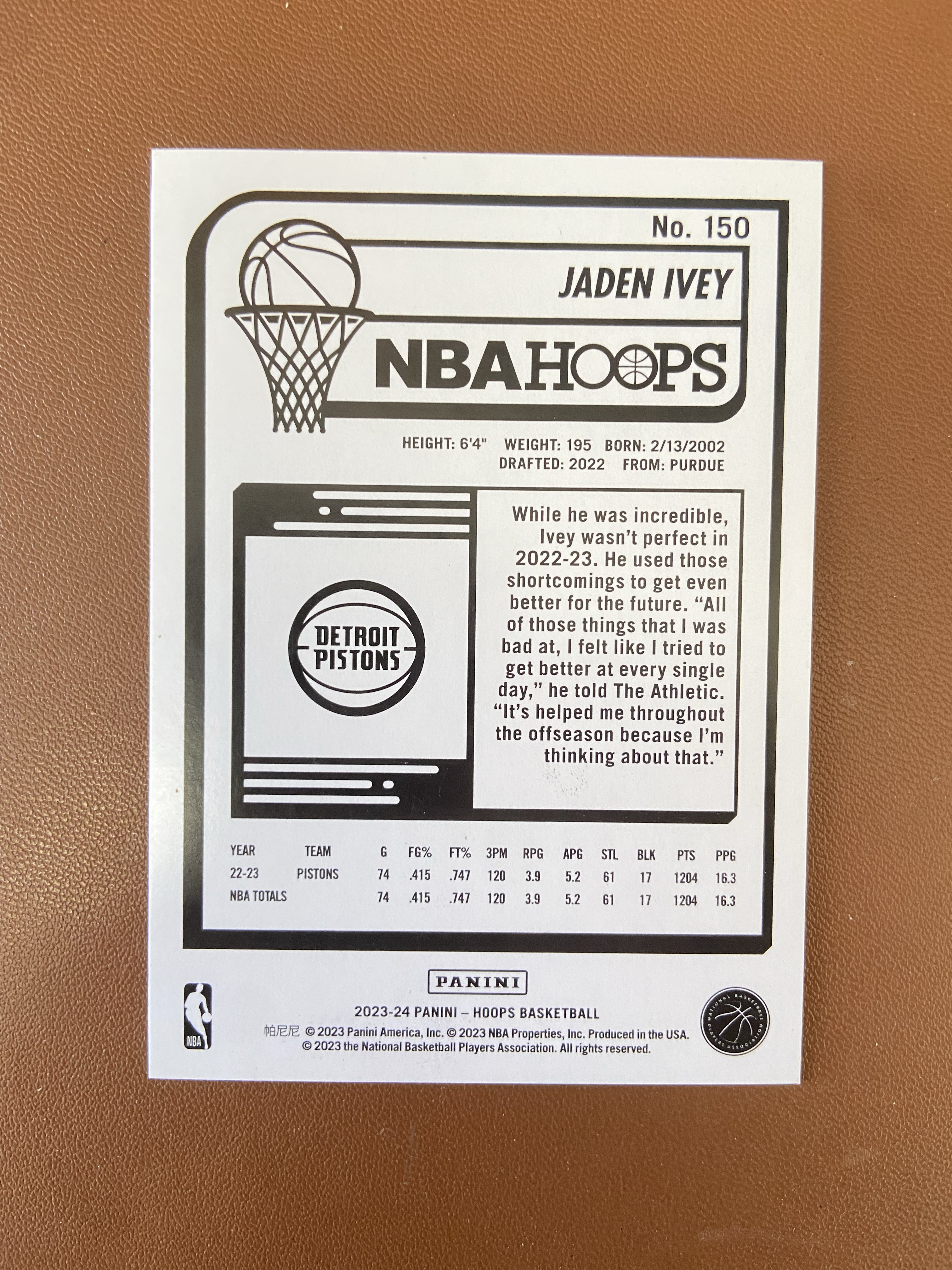 2023-24 Panini NBA Hoops Jaden Ivey RC 活塞 杰登 艾维 064/199编 银折 折射 收藏必备