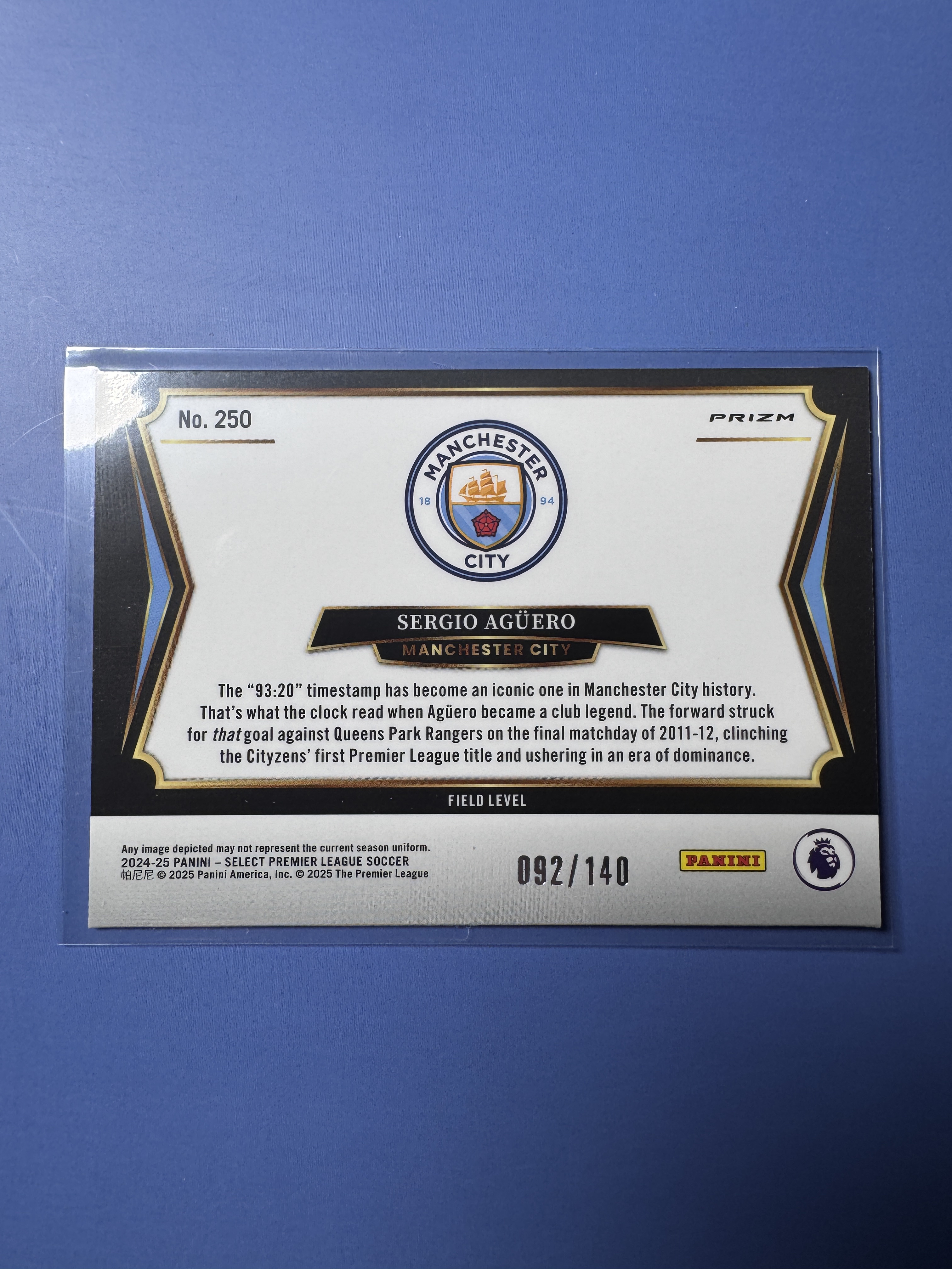 2024-25 Panini Select Premier League Sergio Aguero 英超 阿圭罗 阿坤 曼城传奇 阿根廷 三级 紫折 092/140编 卡品如图