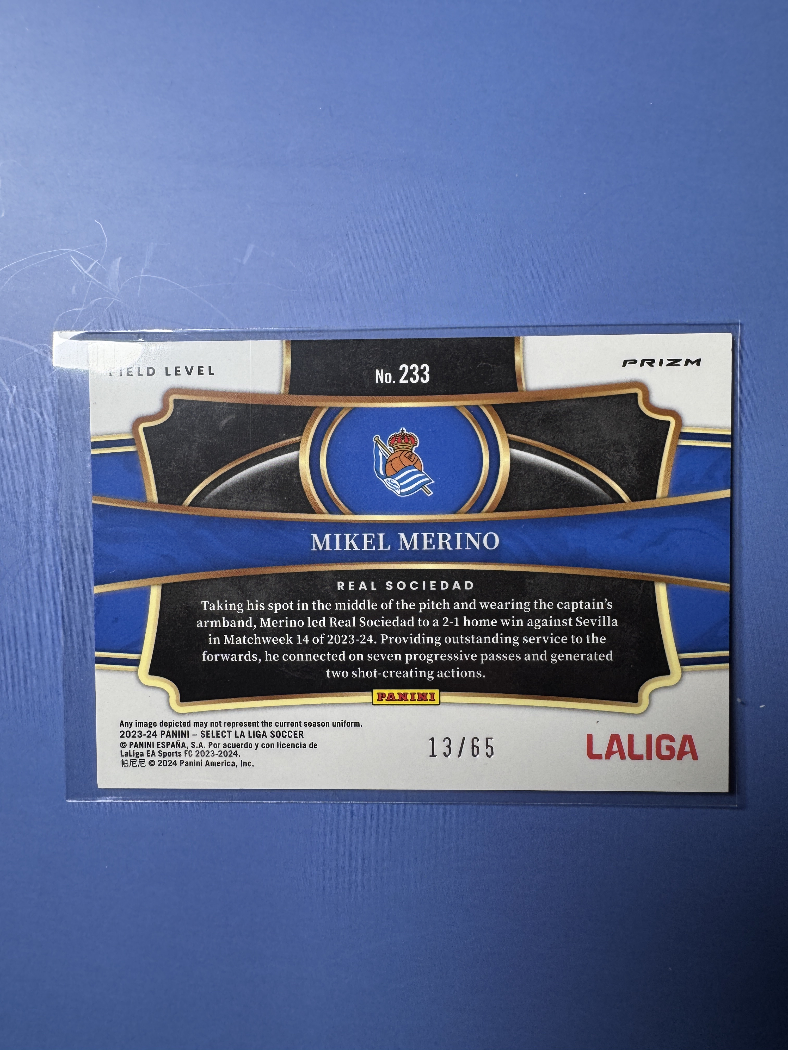2023-24 Panini Select Mikel Merino 西甲 米克尔 梅里诺 西班牙 皇家社会 阿森纳 13/65编 三级 红波纹 卡品如图