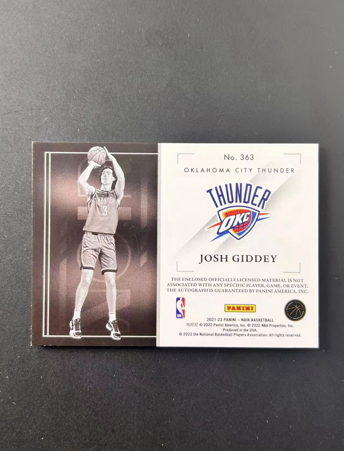 2021-22 Panini Noir Josh Giddey RC 诺尔 约什 吉迪 雷霆 公牛 新秀RC 签字 卡签 /99编 RPA 球衣物料 投资收藏必备