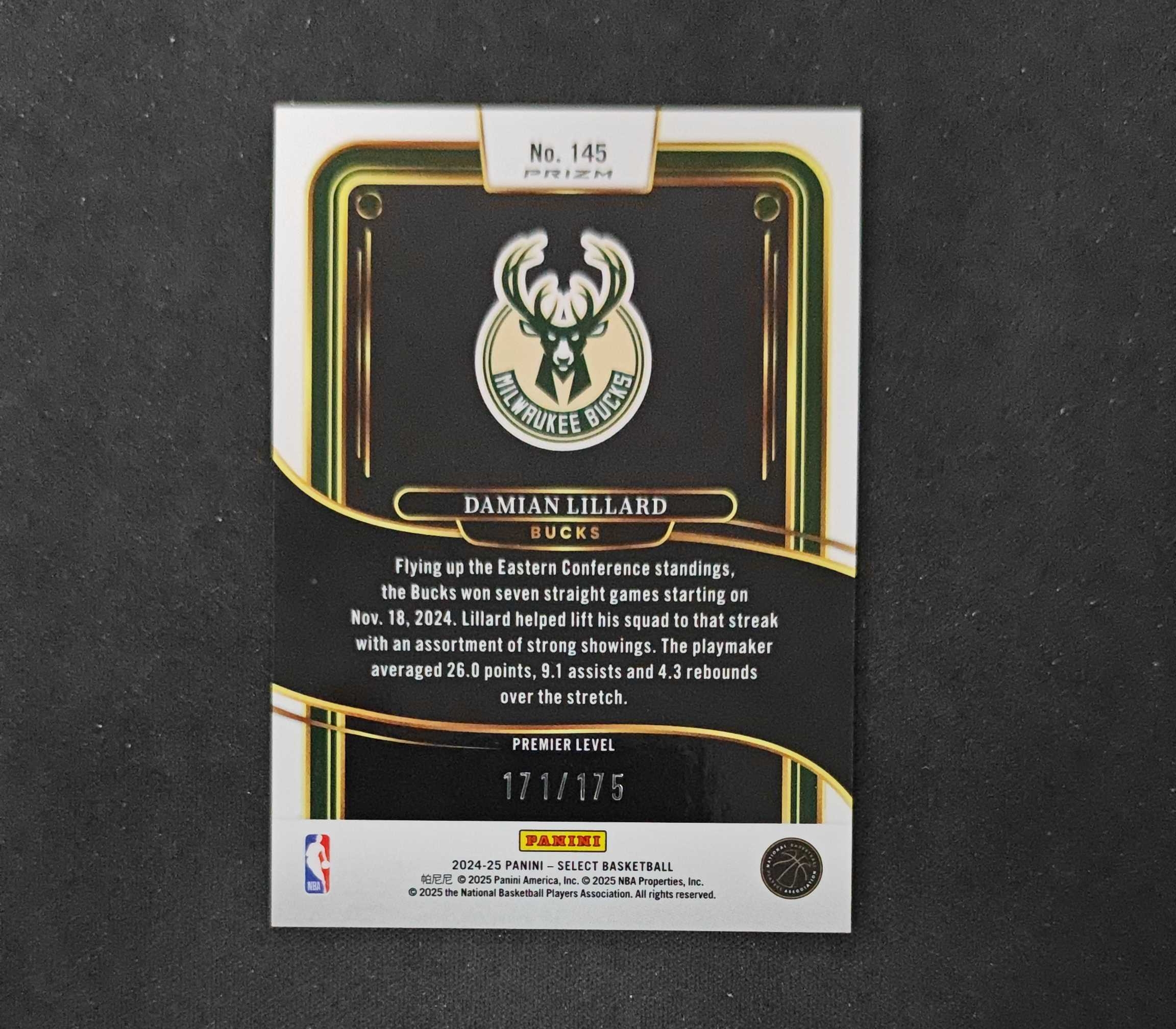 2024-25 Panini Select Damian Lillard 【SC拍卖】SE 雄鹿 利拉德 175编 铜折 瑕疵如图 收藏必备(ing哥)