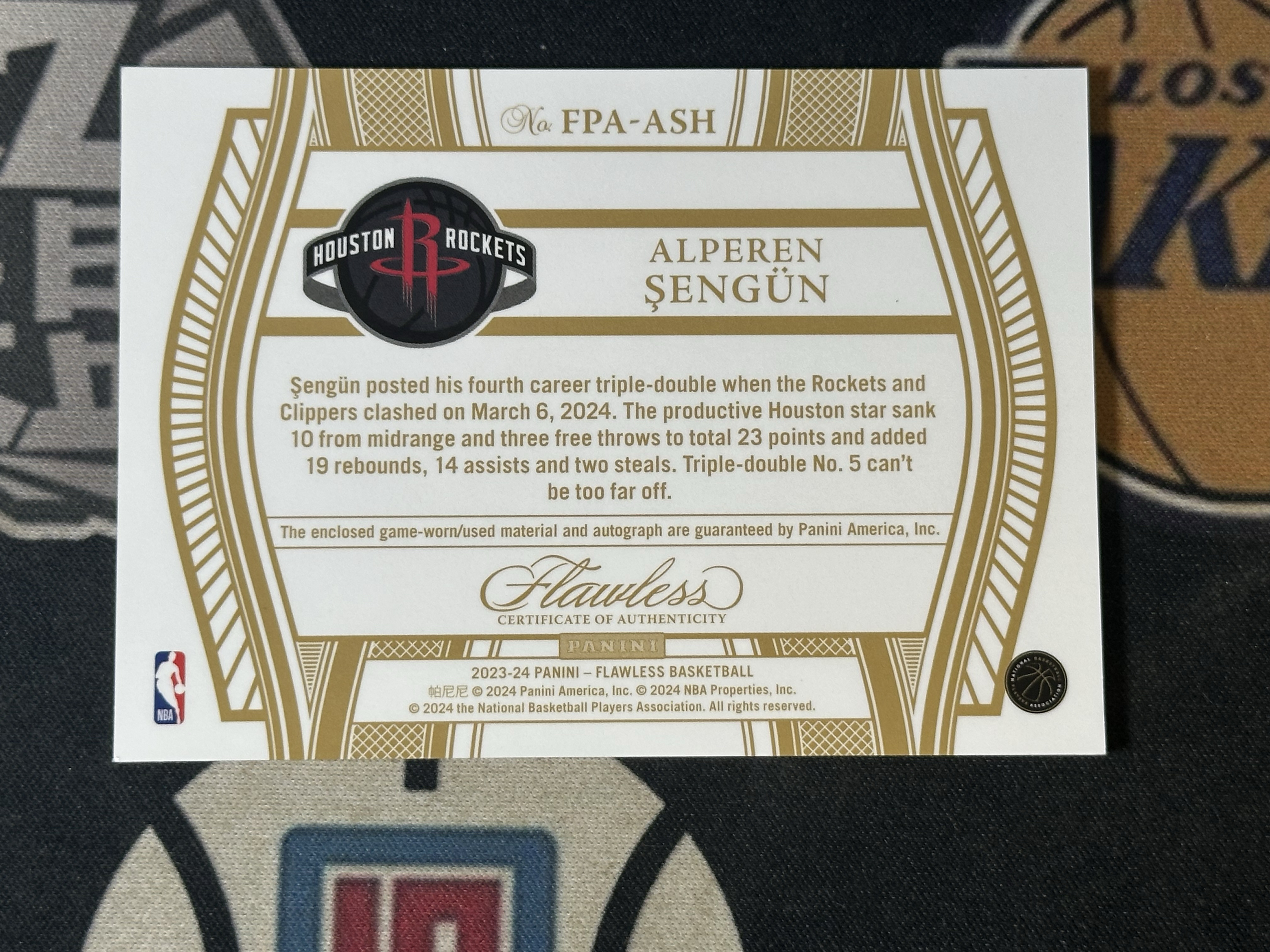 【预付85%卡迷联盟-入眼】2023-24 Panini Flawless Alperen Sengun 手提 FPA 横版 球衣Patch 签字 卡签 火箭 小火龙 阿尔佩伦 申京 07/10