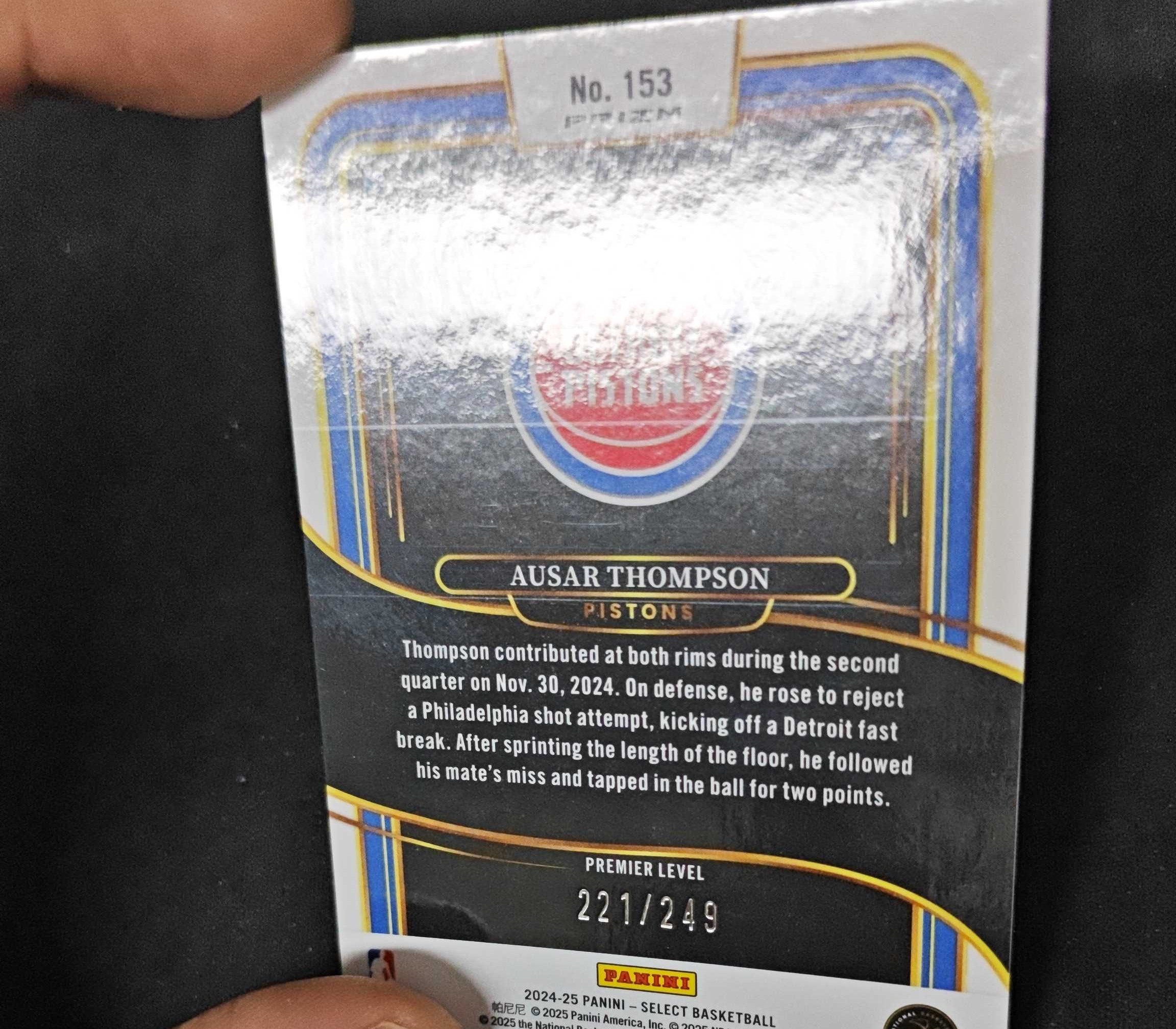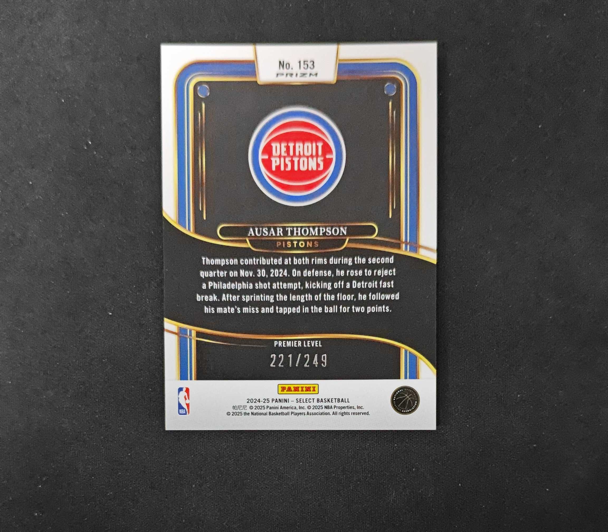 2024-25 Panini Select Ausar Thompson 【SC拍卖】SE 活塞 奥萨尔汤普森 249编 红圈圈 瑕疵如图收藏必备(小骆)