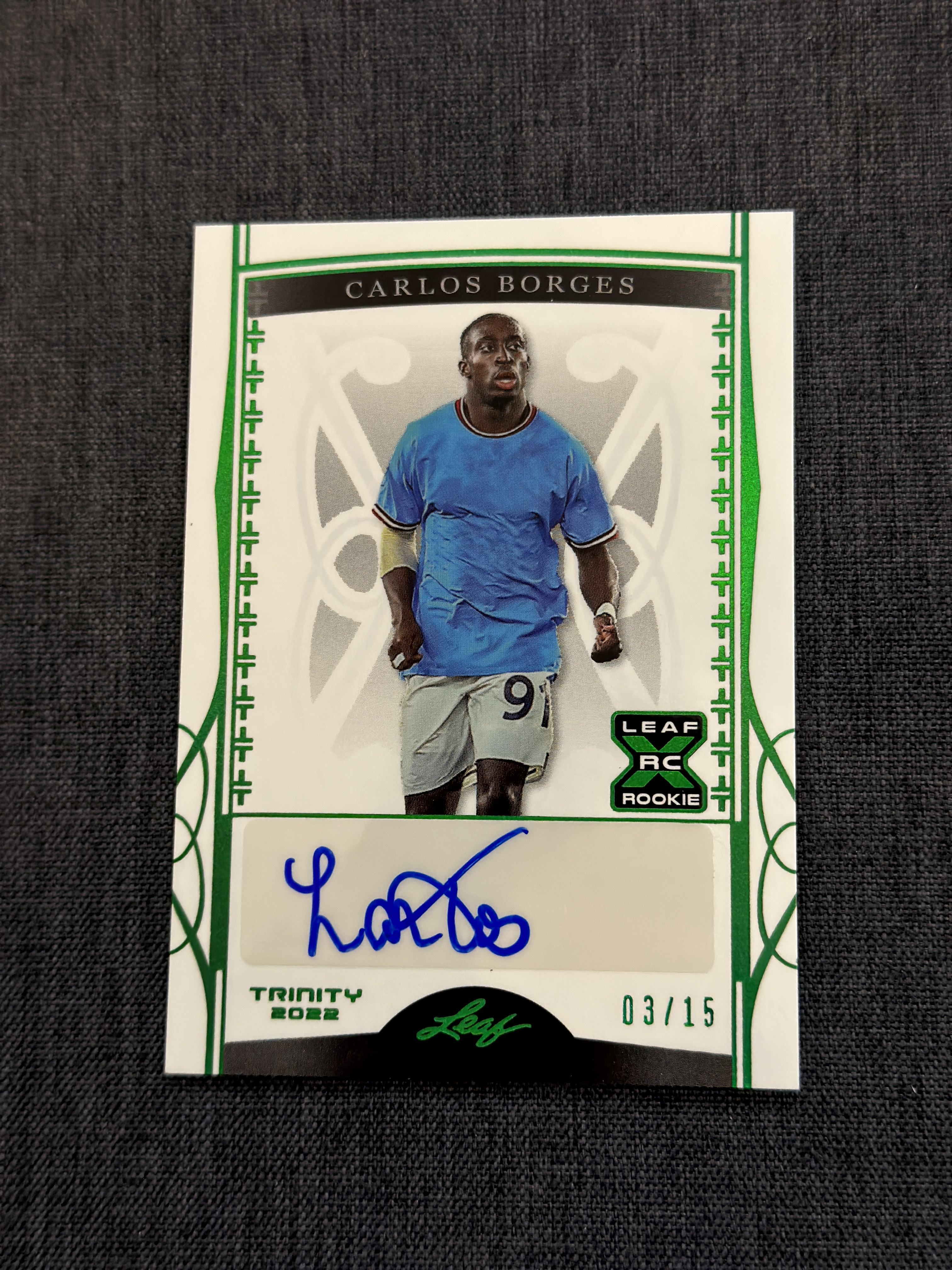 2022 Leaf Trinity carlos Borges 卡洛斯 福布斯 签字 3/15编 绿折 RC 新秀 曼城 狼队 欧冠对阵巴萨攻入2球【爱彼】