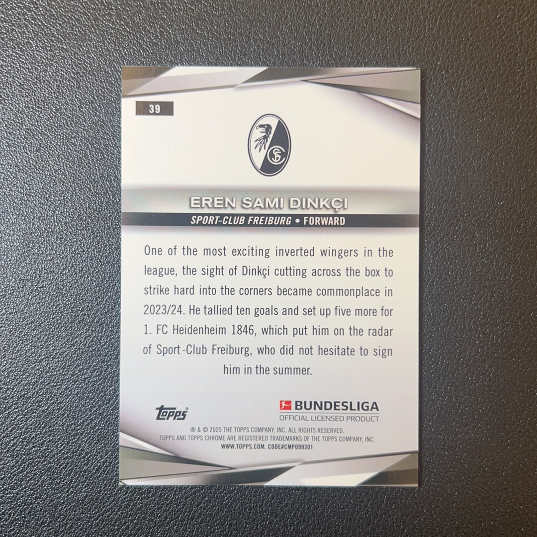 2025 Topps chrome bundesliga EREN SAMI DINKCI 德甲 TC 埃伦 萨米 丁克奇 弗莱堡 金熔岩折 50编 轻印-S00038