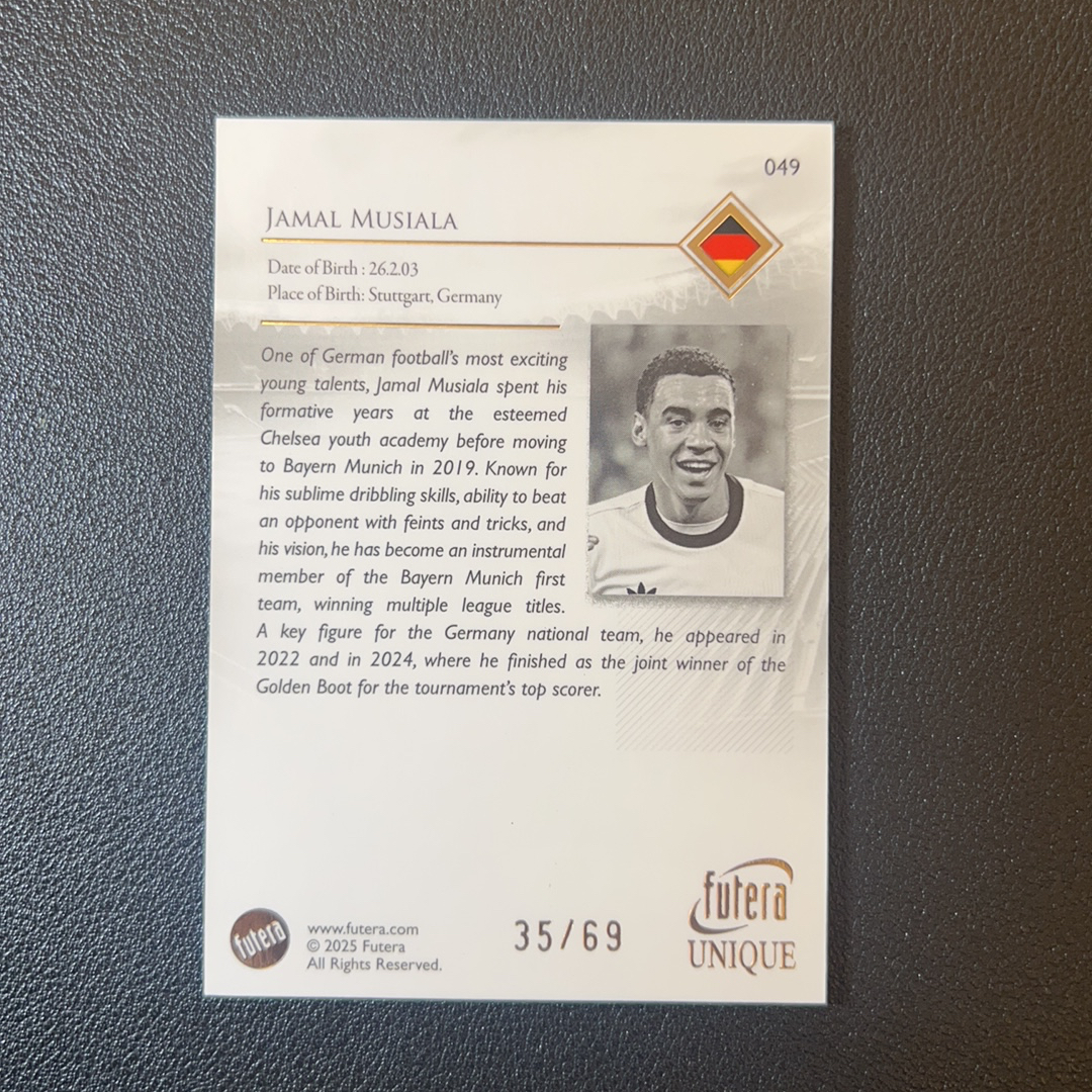2025 Futera Futera Unique Jamal Musiala 福特拉 德国 拜仁 穆夏拉 69编 收藏必备 轻印-SY9117