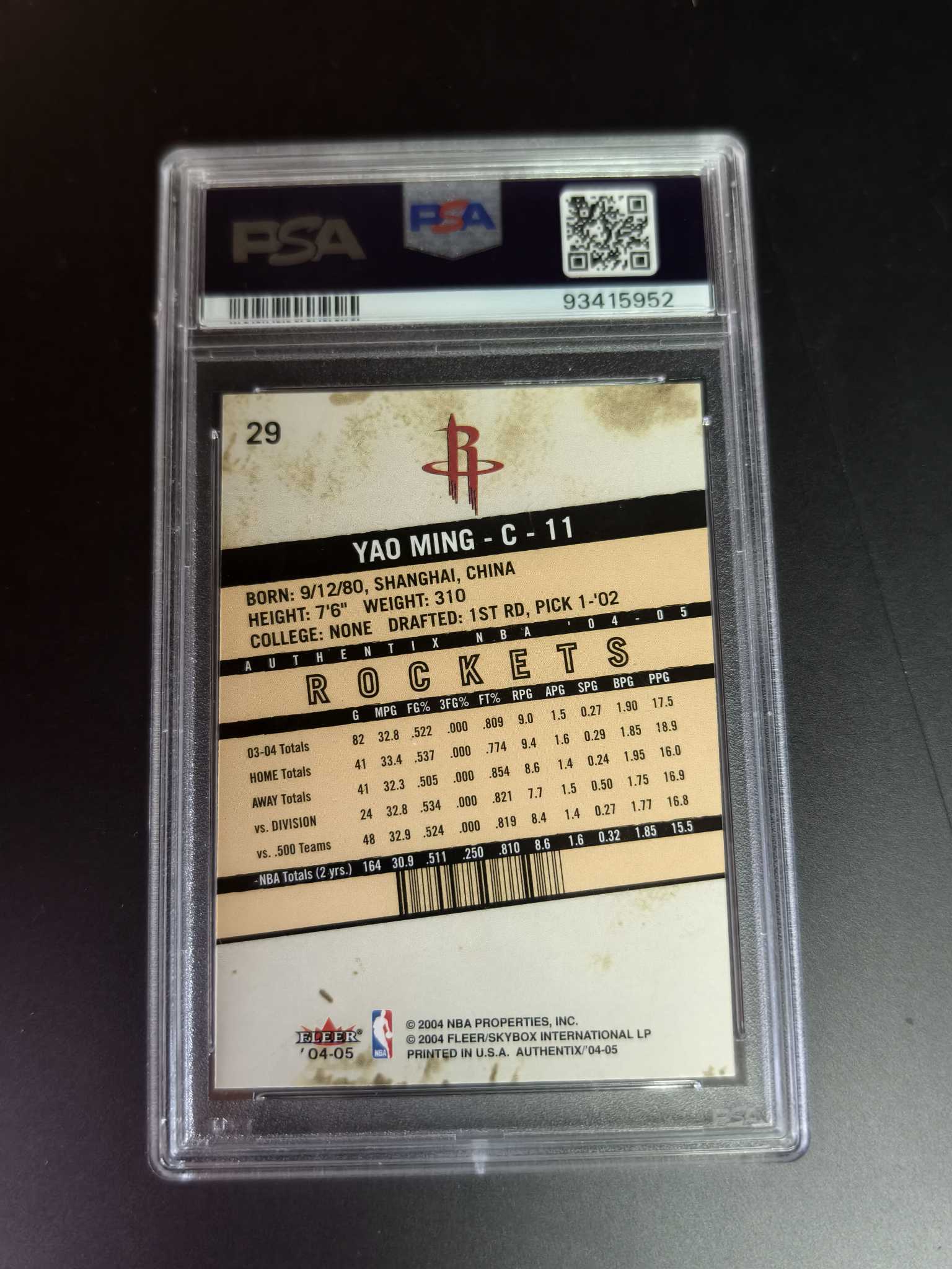 2004-05 Fleer Authentix Yao Ming 姚明 PSA 9分 经典 高端系列 大比例 特卡 小巨人 长城 专收必备
