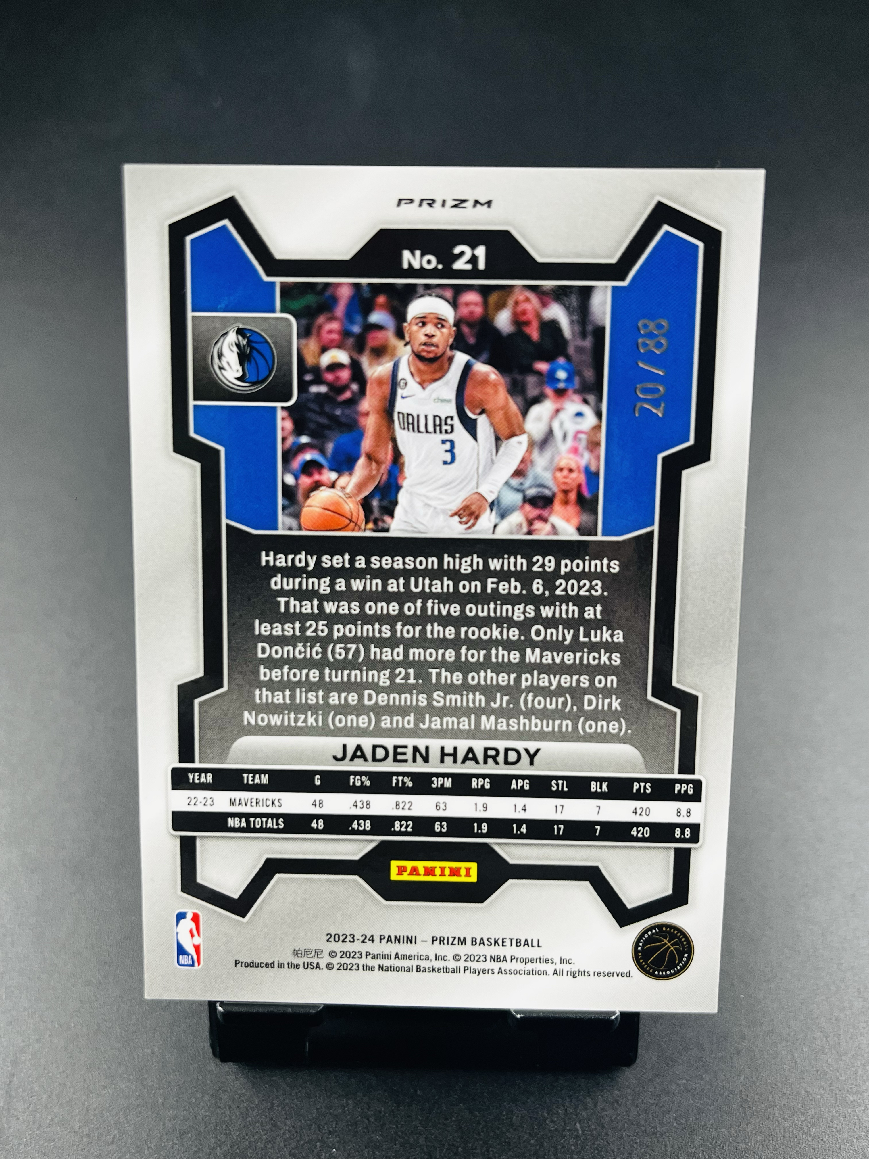 2023-24 Panini Prizm Jaden Hardy pz 独行侠 杰登 哈迪 20/88编 三色折【鸟叔拍卖】泡椒