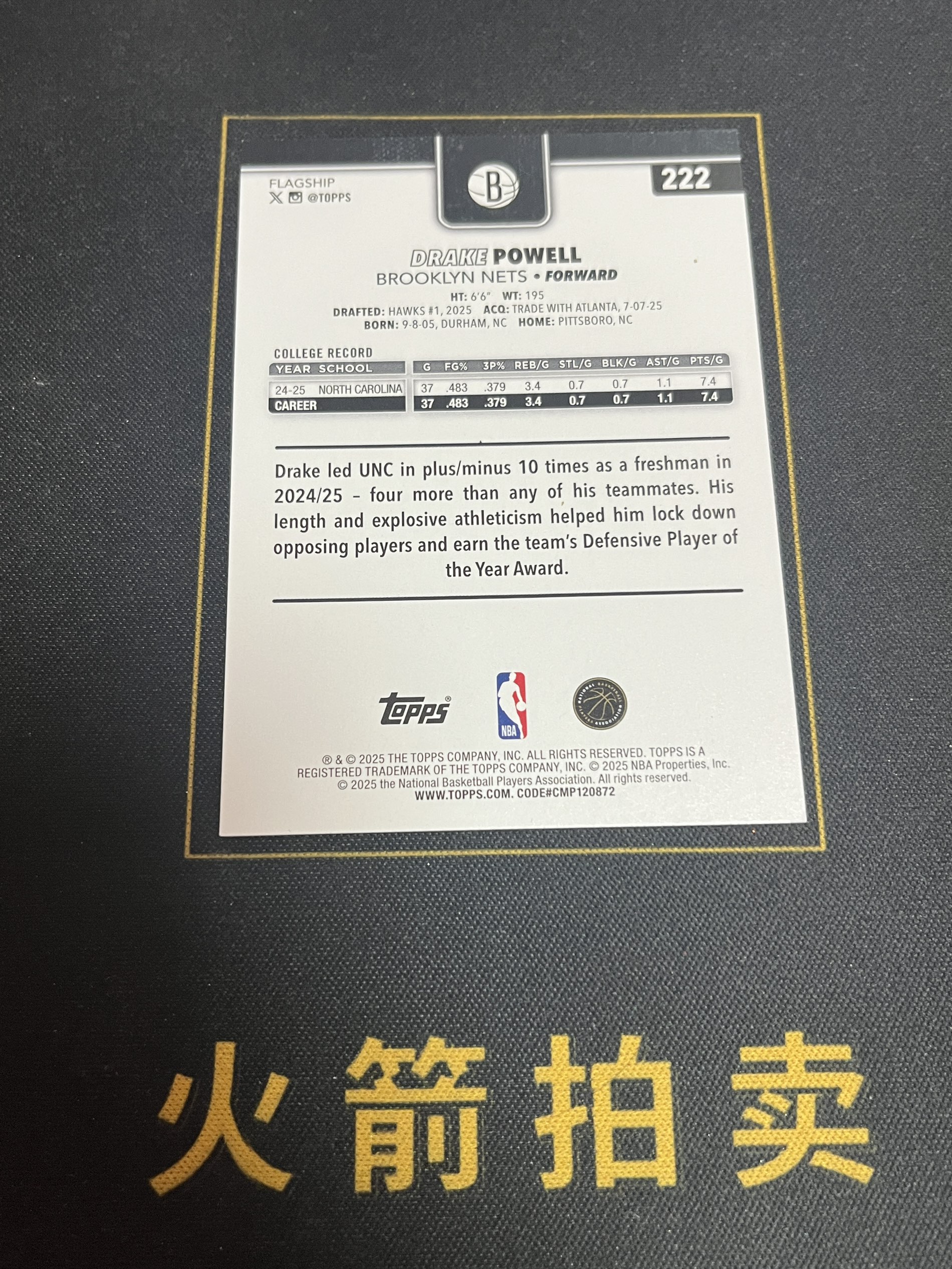 【火箭拍卖 截标预付82%】2025 topps flagship drake powell 旗舰 篮网 德雷克 鲍威尔 新秀 rc 1523/2025编 专收必备「MT星辰576」1119F02祺
