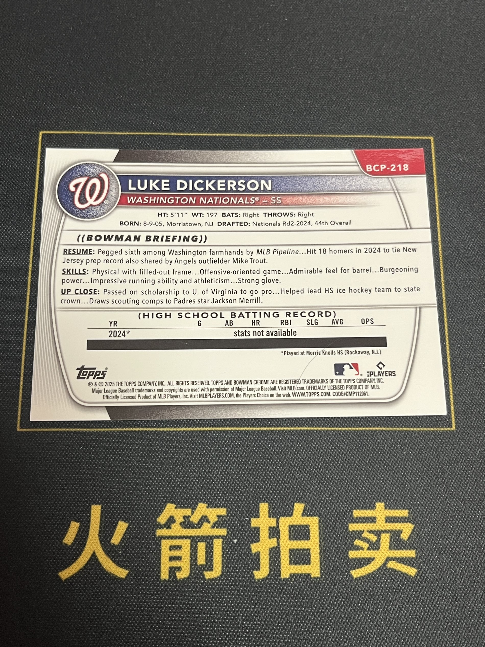 【火箭拍卖 截标预付82%】2025 topps bowman chrome luke dickerson 卢克 迪克尔森 迪克森 1st 银脉冲折 折射 370/399编 专收必备 瑕疵看图「MT星辰576」1119F02祺