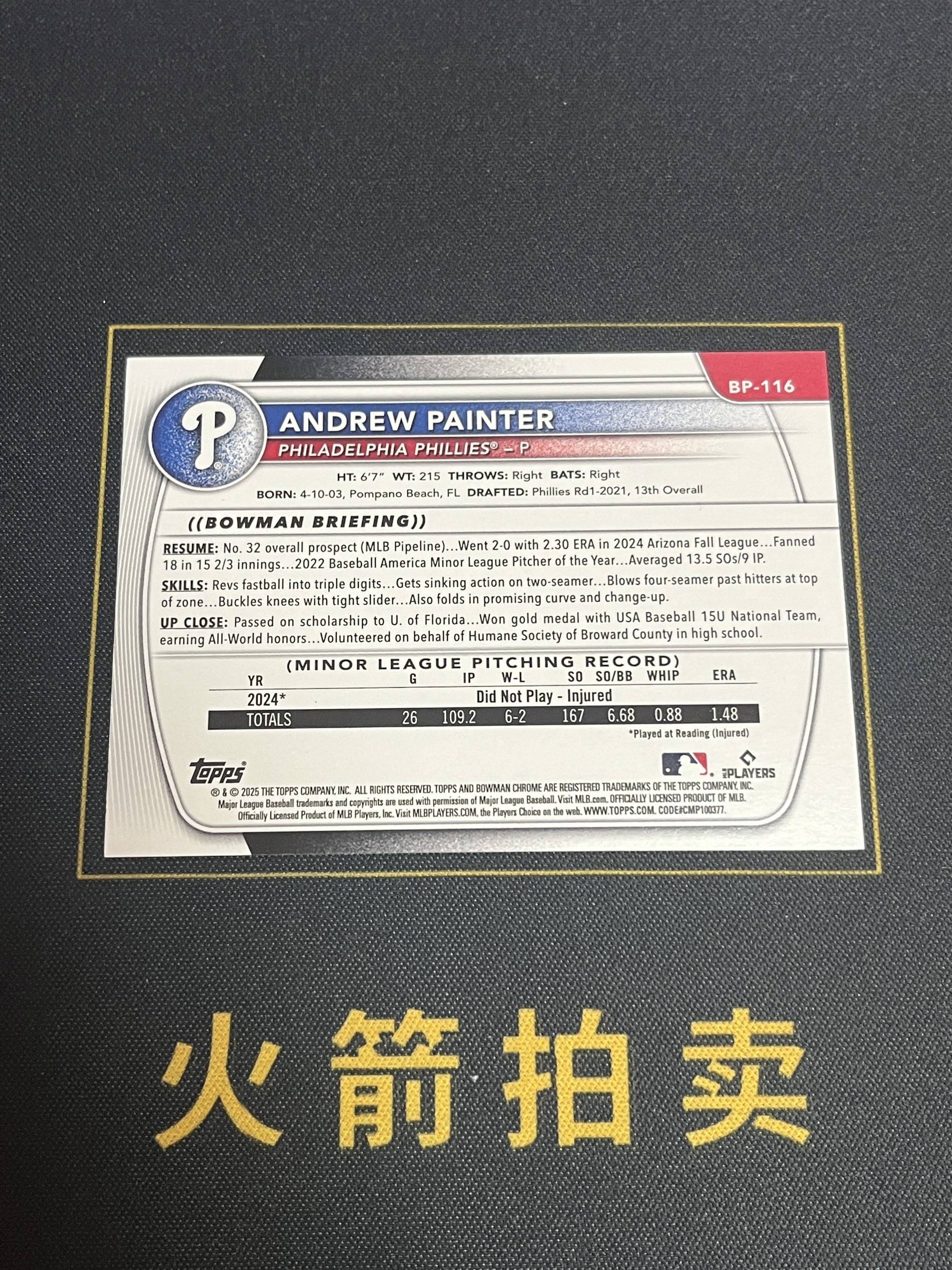 【火箭拍卖 截标预付82%】2025 topps bowman andrew painter 安德鲁 佩因特 88/399编 专收必备「MT星辰576」1119F02祺