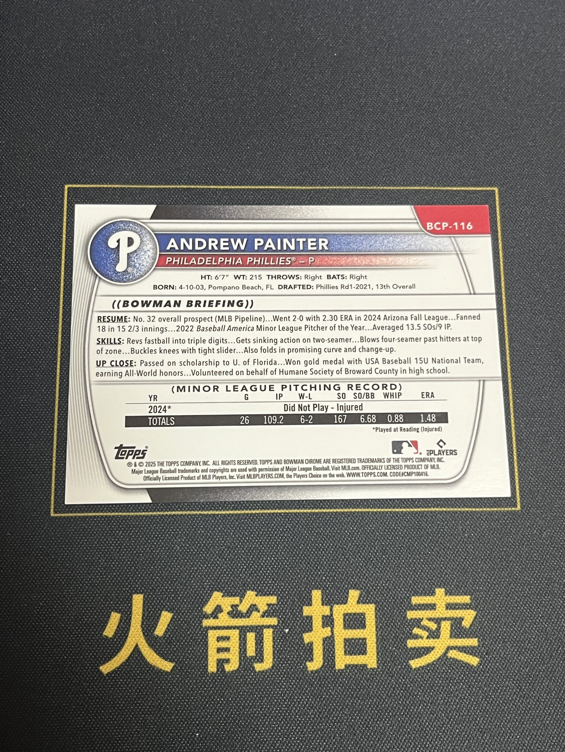 【火箭拍卖 截标预付82%】2025 topps bowman chrome andrew painter 安德鲁 佩因特 橙shimmer折 折射 6/25编 专收必备「MT星辰576」1119F02祺