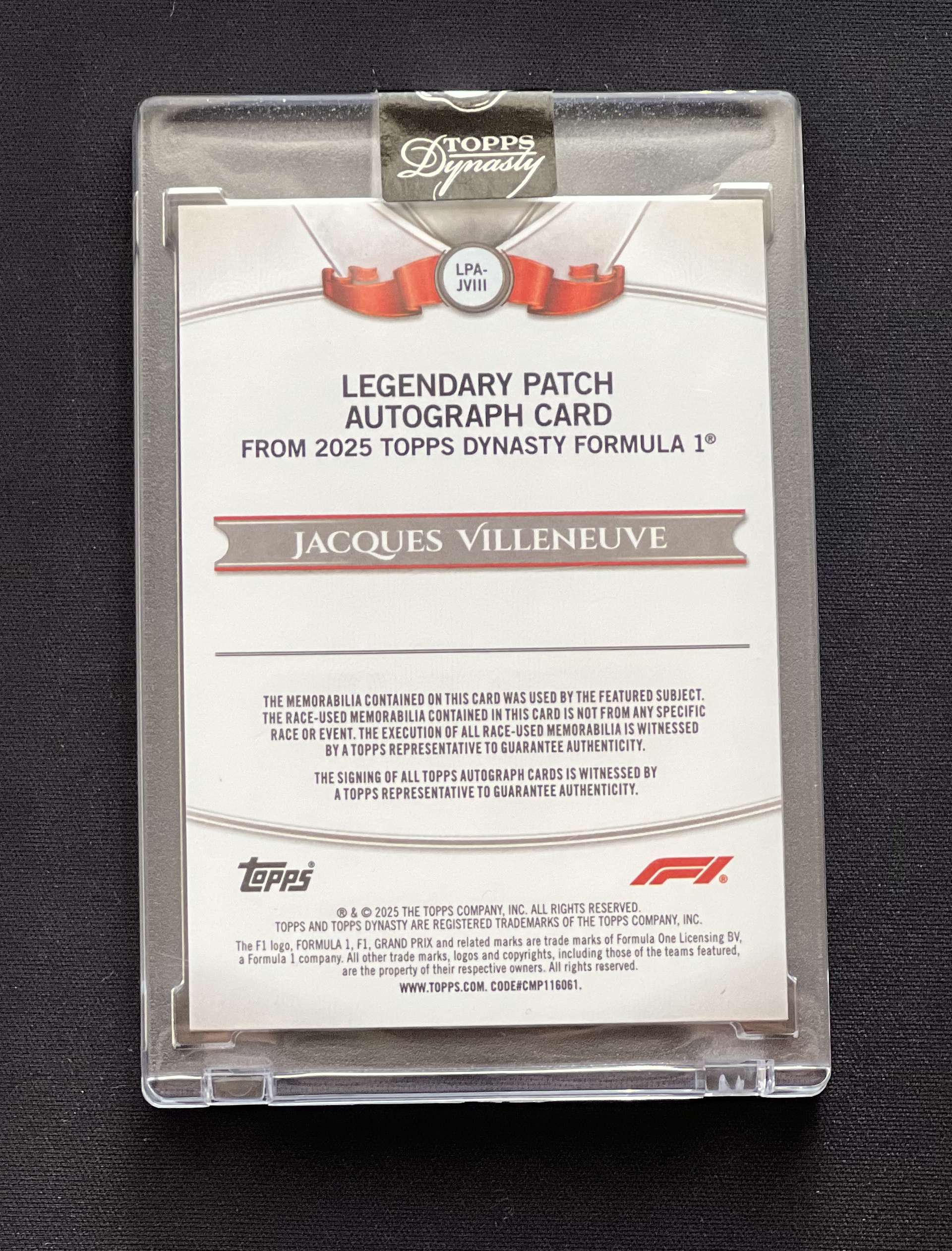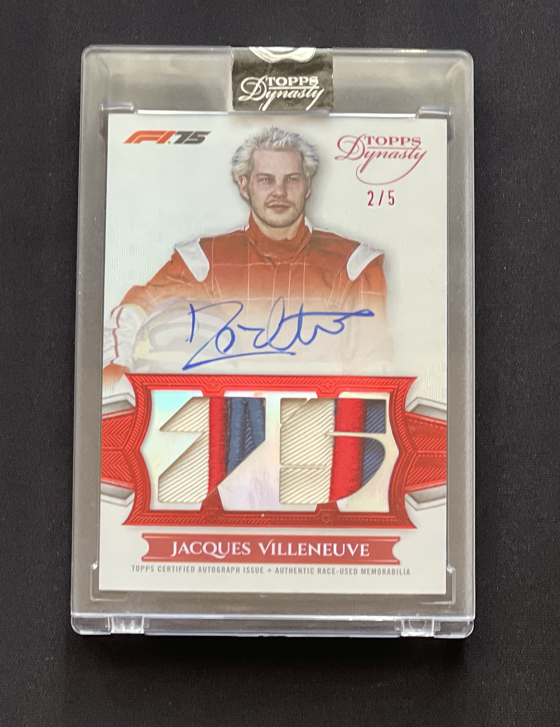 2025 Topps Dynasty JACQUES  VILLENEUVE F1高端王朝系列   F1传奇车手   雅克.维伦纽夫  2/5编75周年物料签  卡签  原封砖  收藏必备